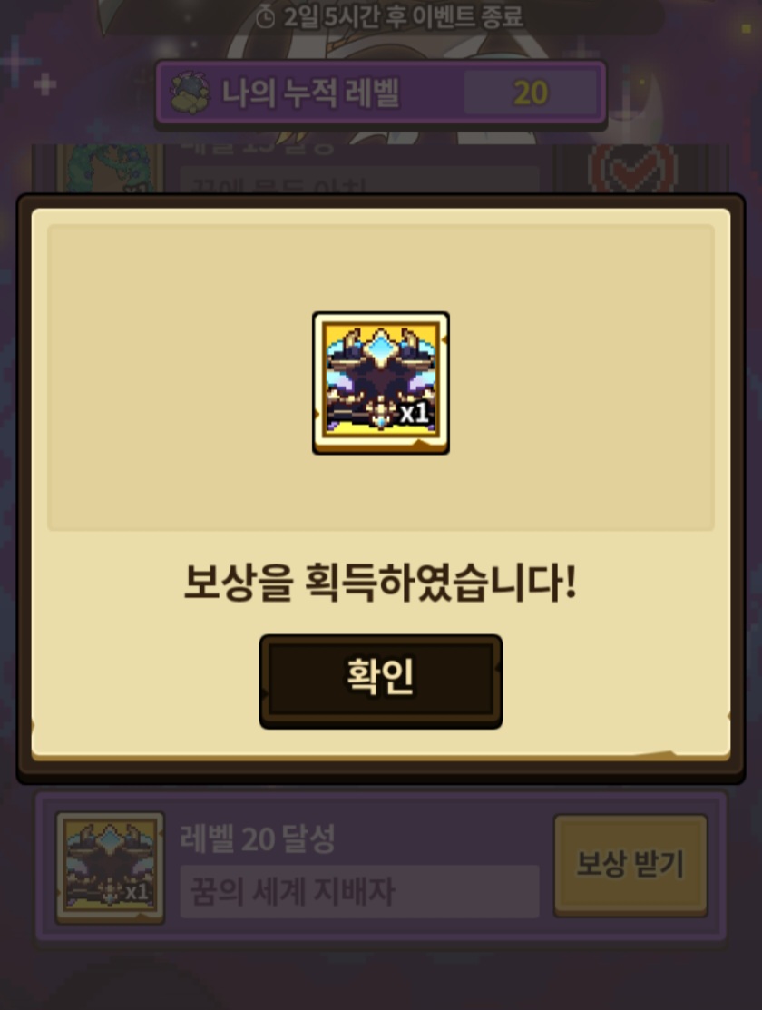 정말 지겨웠던 꿈세계 이벤트… 15까지만 16까지만 하다 결국 20까지 찍었네요…ㅠㅠ
