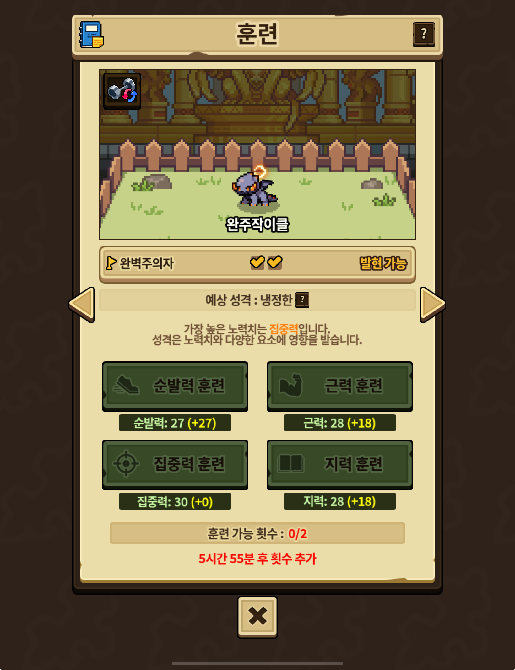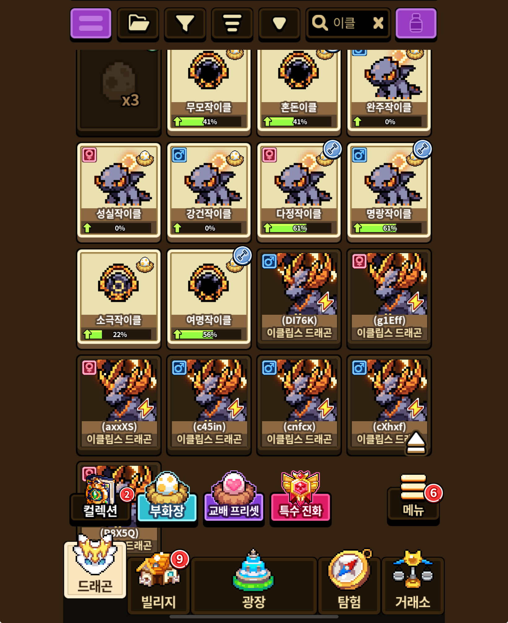 해치:5마리(성격작 완료된 용:3마리/완주, 성실, 다정)