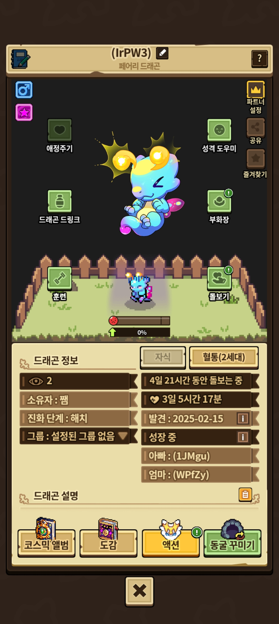 어쩌다보니 한마리 뽑았는데 도감작 필요하신분들은 한번씩 보고가세요~파트너 해뒀습니다 :)