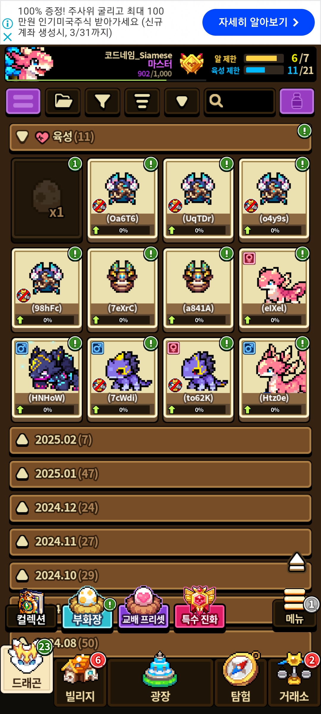 짱밖아 놨던 미리내들 2쌍을 꺼내어…명문가의 도전…! 설화드래곤중 명문가의 미리내 끝난후 도전할 애 추천 받아요!