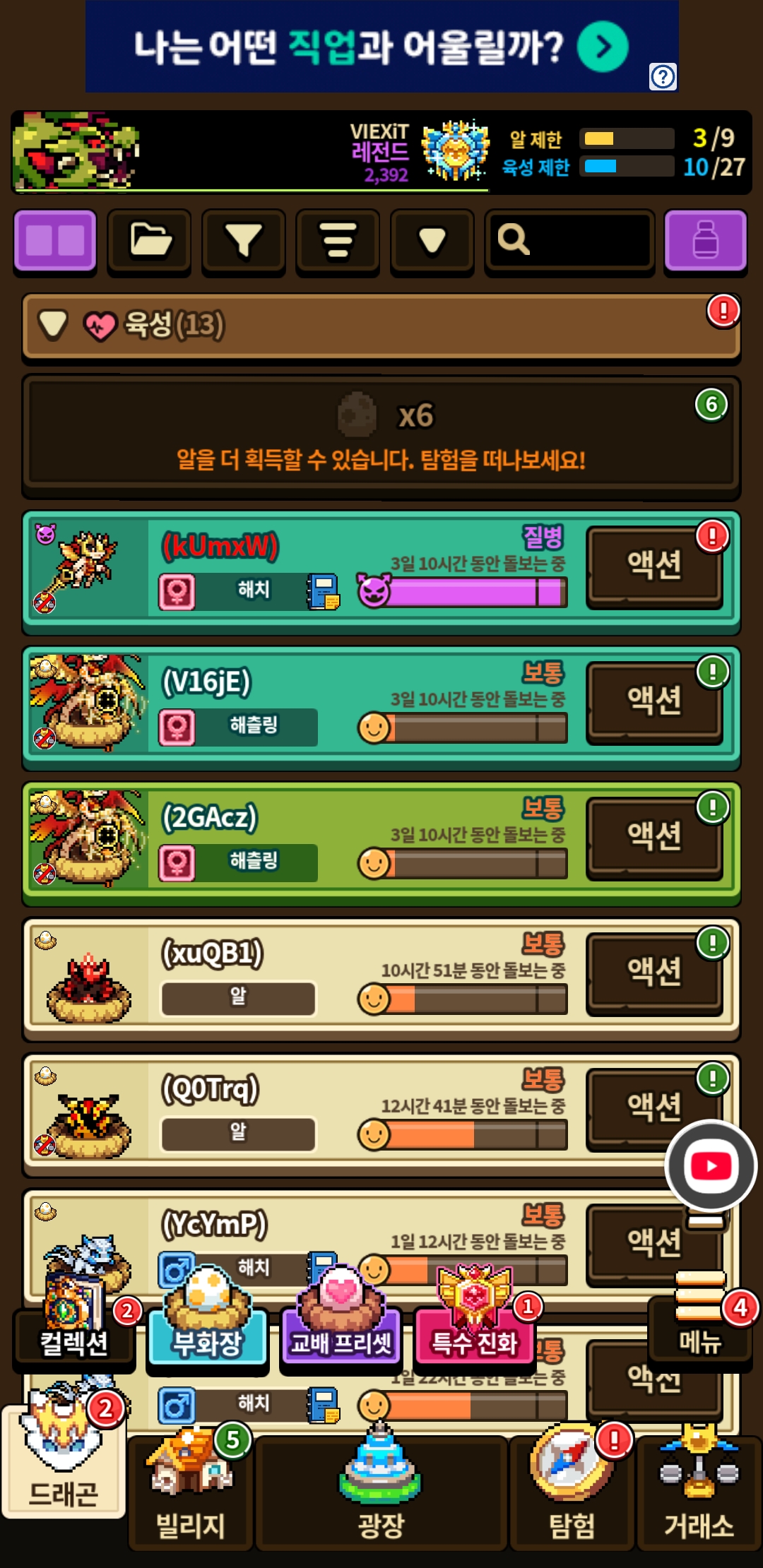 다른 애들은 해치 해츨링 성체순으로 예쁘게 정렬되어 있는데 혼자 해츨링 해츨링인거 보니까 마음이 너무 아프네요 구라같다