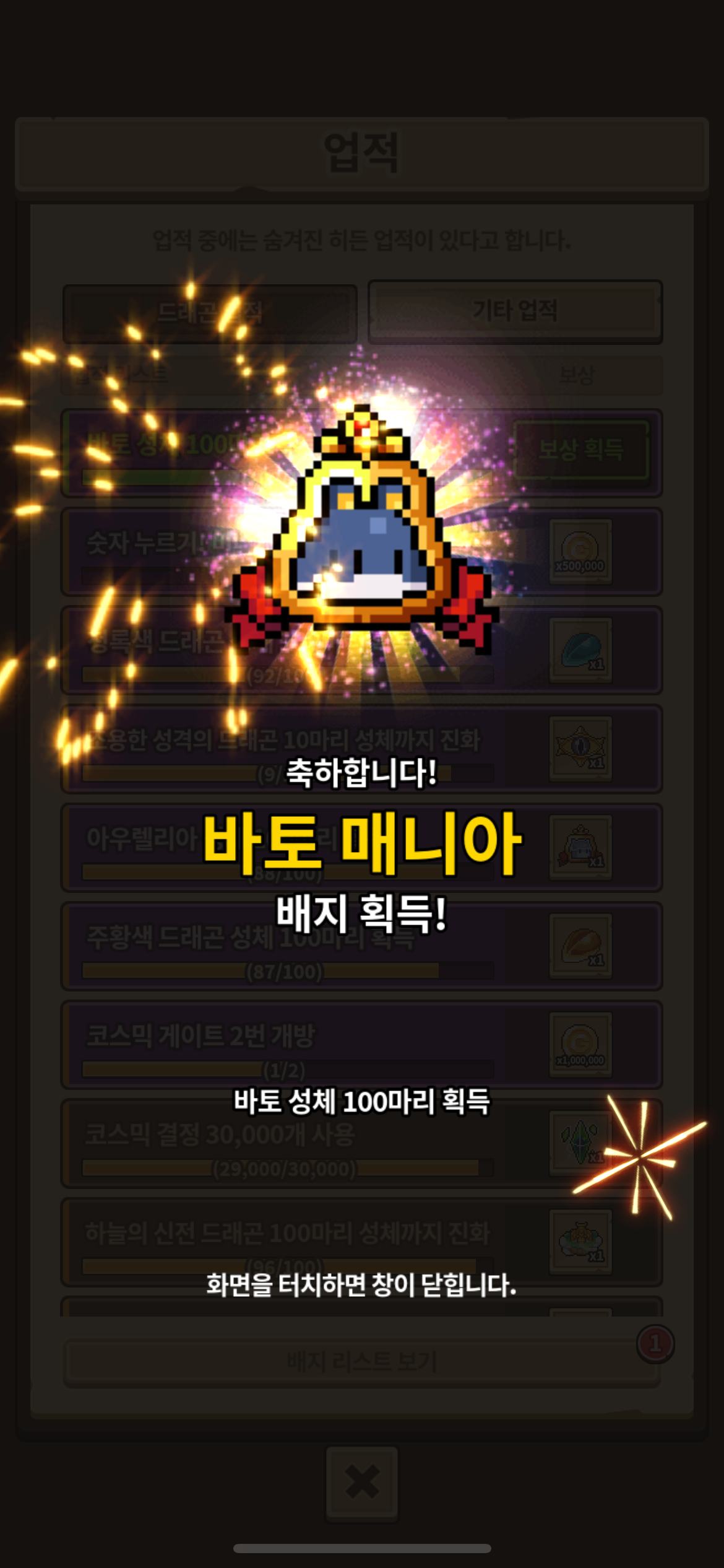 심해드래곤 첫 매니아 뱃지 획득으로 일요일 아침 생존을 알립니다