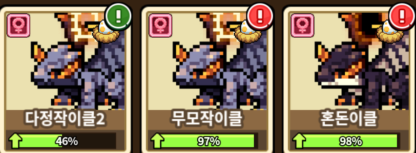 …뭐 이클은 많지만..이런 작은 실수로 교배 쿨타임 끝날때까지 기다려야한다니..!