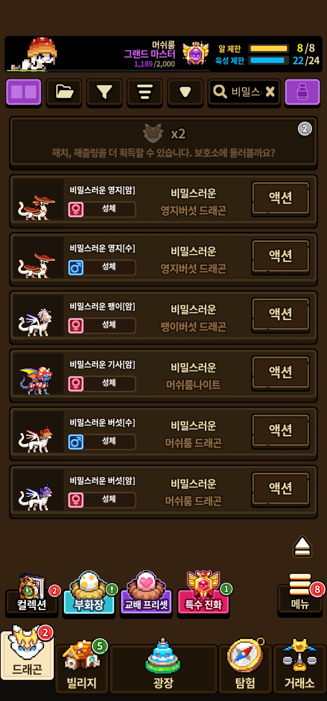 이거 총 6마리 필요한데(독버섯포함할시 8마리)