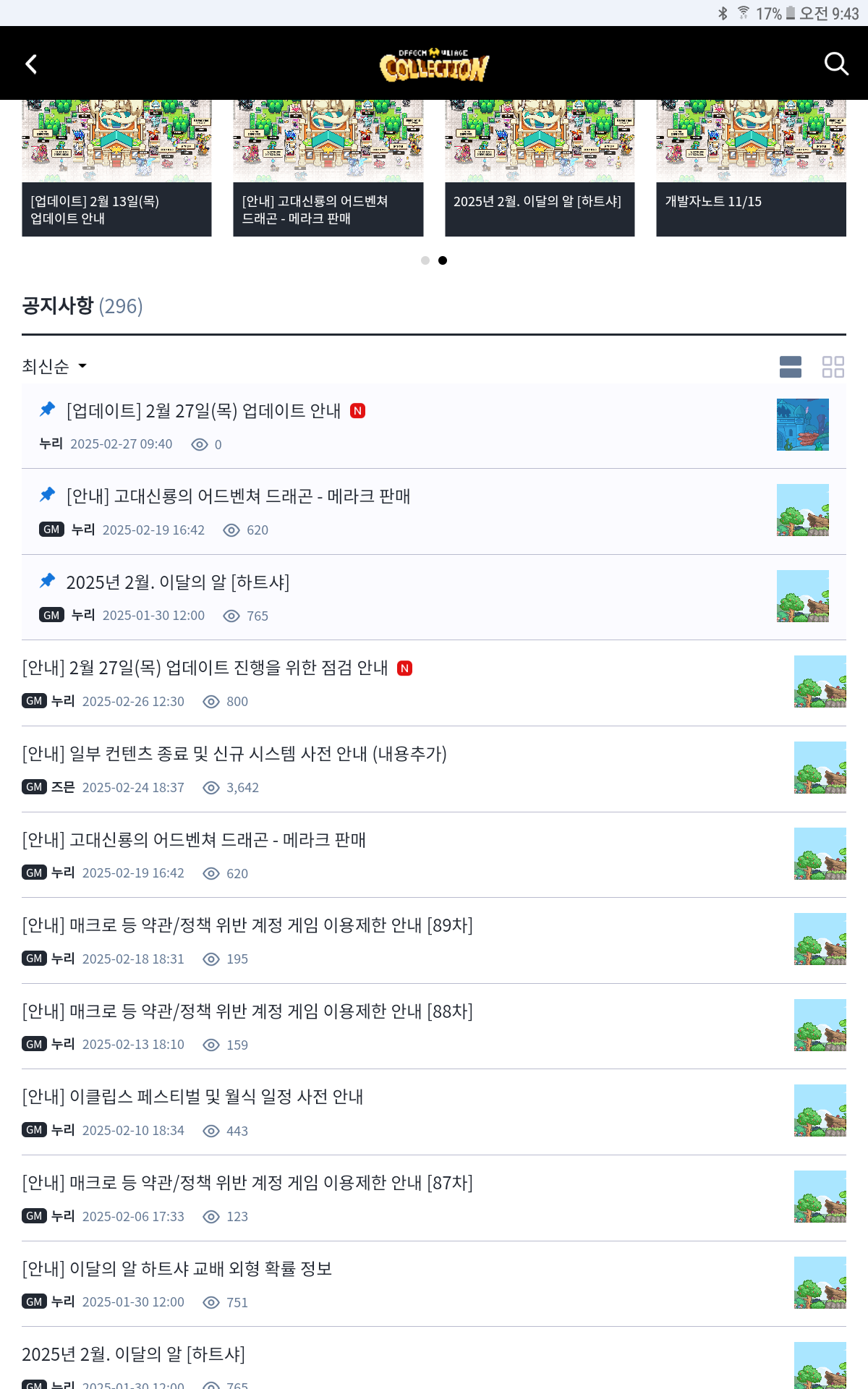 공지사항 보다가 GM누리 조회수 0 2월 27일 업뎃이라는 게시물이 있길레 와 드디어 업뎃 공지가 뜨는구나 하고 눌렀더니 사라짐