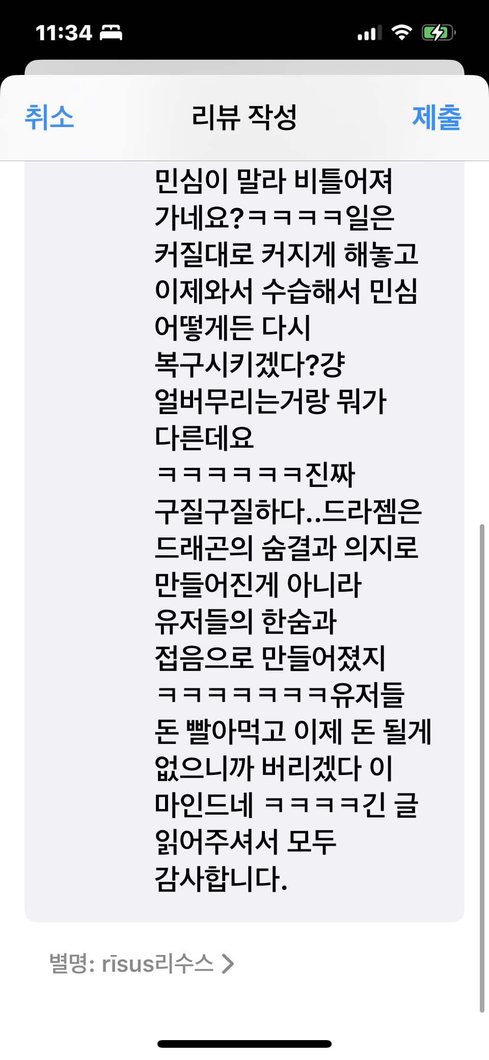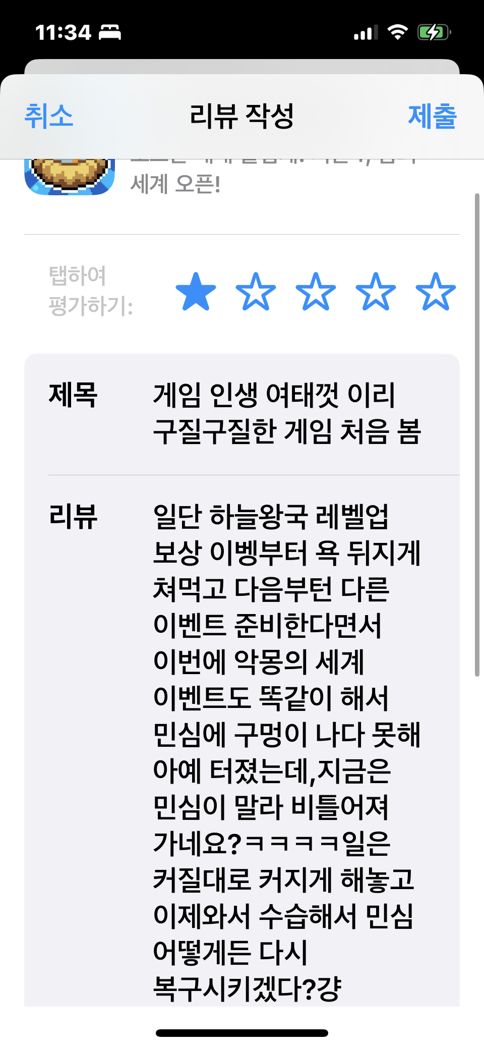 자유게시판 진짜 딥빡해서 리수스를갈아만든리소스 2025-03-02 06:36 206 0 공유 공유 URL 복사 페이스북 왓츠앱 카카오톡 라인 레딧 닫기 공유 장문의 리뷰를 썼습니다 16 0 댓글 0 삭제 이미지첨부 0/3000 등록