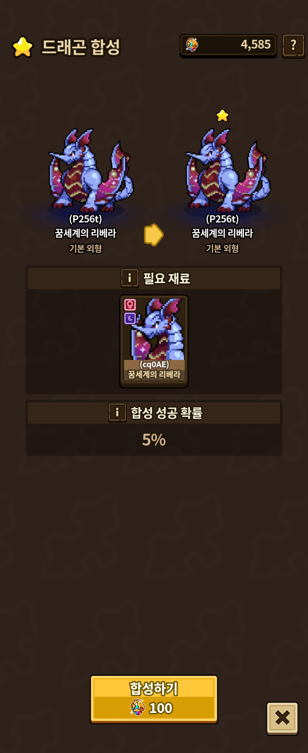 0→1 : 재료필수 기본 5%확률