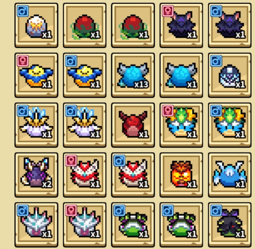 이제 할게 거의 성격작이나 족보작 밖에없어서 알가방에 있는 알들 키우고 도감작필요하신분들도 도울겸 겸사겸사 올려봅니다.
