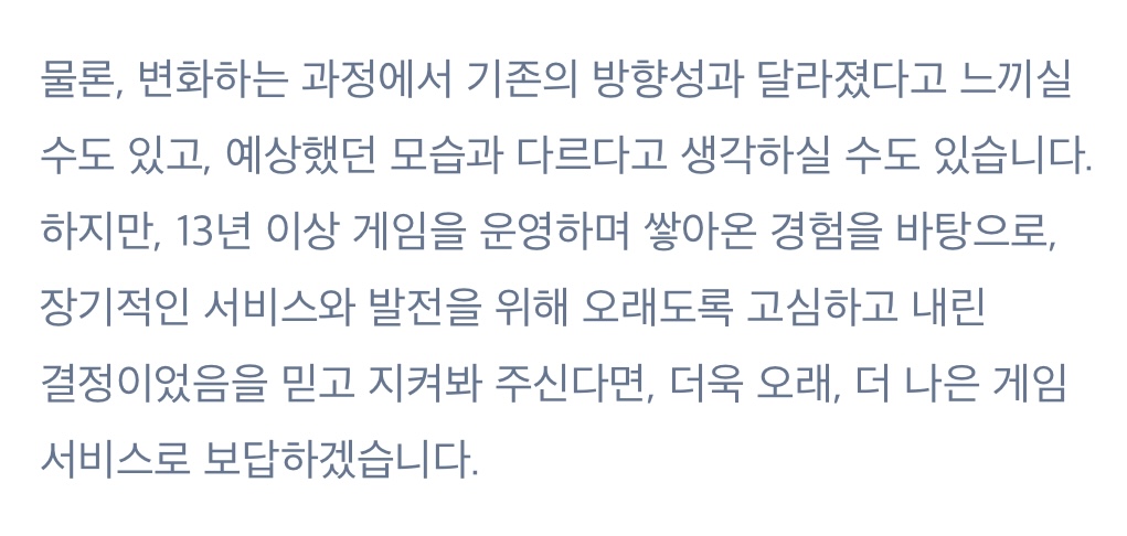 13년 이상 게임 운영한 경험이 본인들 운영 미숙으로