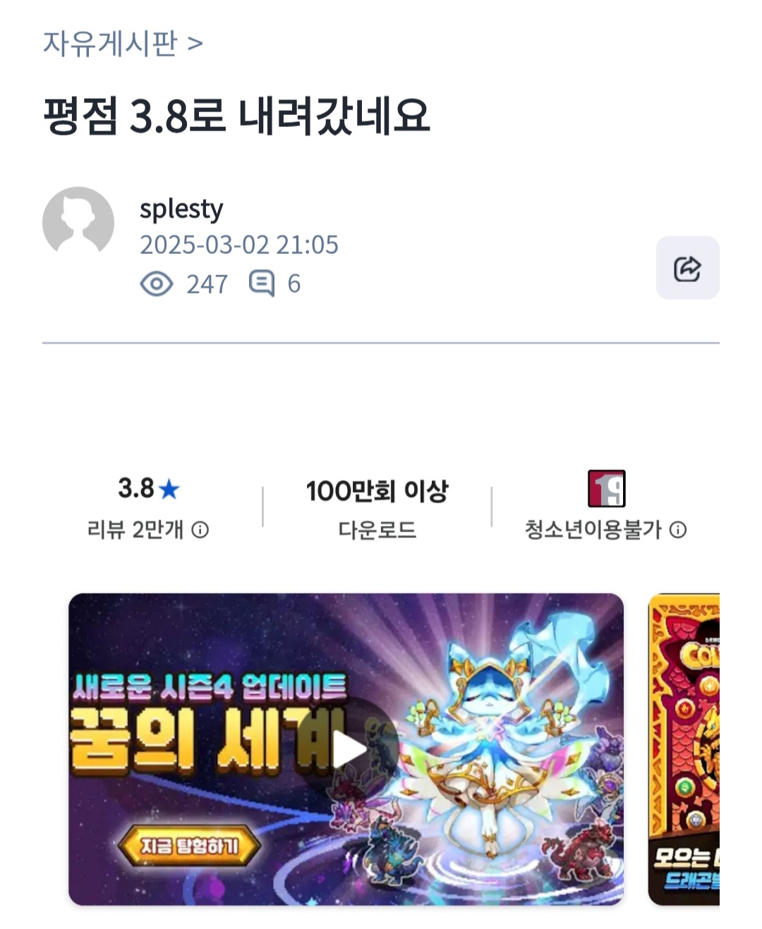 3월 2일에는 3.8이었는데