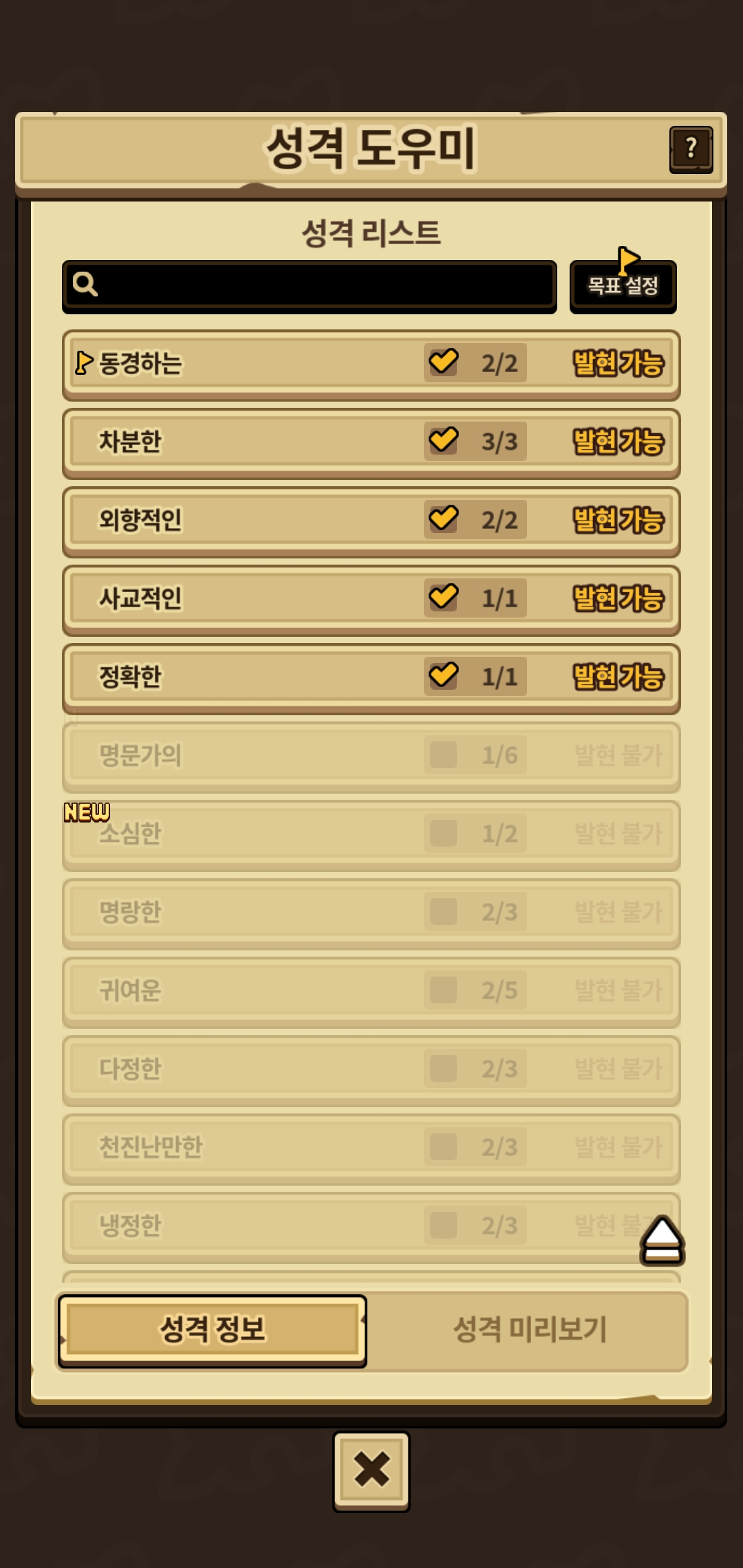성격 발현에 확률이 있다고 들어서 만들 수 있는 한 최대한 많이 만들어봤습니다..