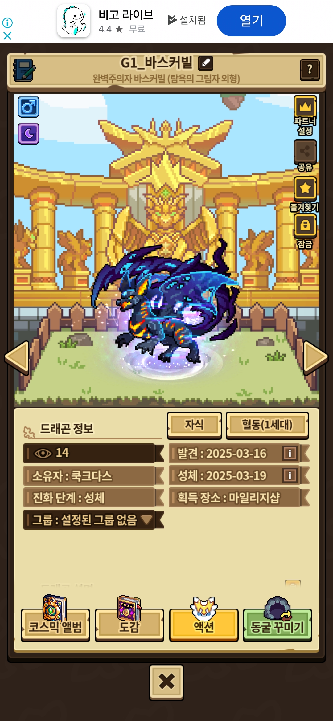 짜란 ~ 저번에 피곤한 바스커빌을 이번 출석 보상인 찬란한 달빛보석으로 완벽주의자로 바꿧습니다..