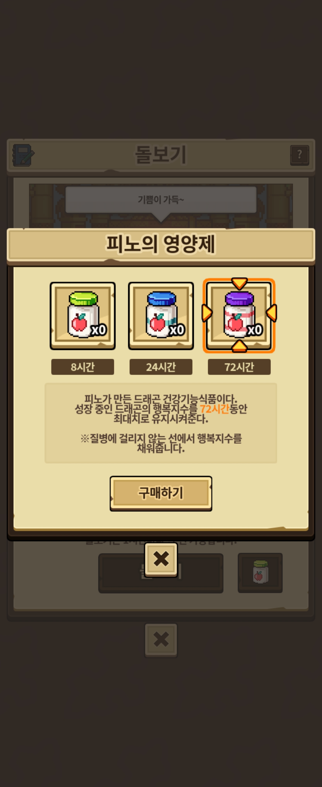 저는 초반에 8시간짜리 영양제 먹인상태로 돌보면 모르는 돌보기도 어느정도 수치만큼 올려주는지 알려주는 그런걸로 생각했거든요