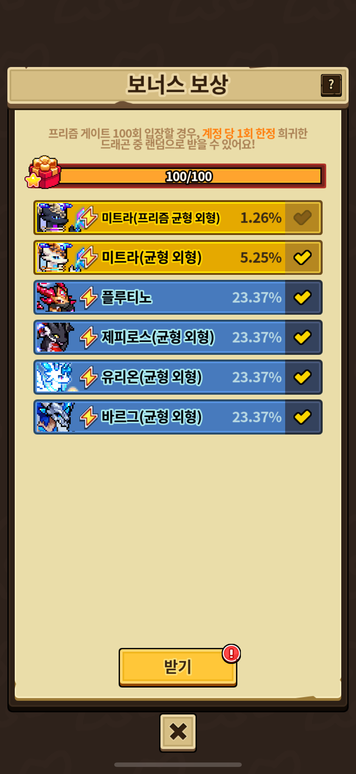 안 얻고 만다.. 진짜 이벤트라곤 맨날 드래곤 반강제로 키우게 하지.. 보상은 노력과 시간에 비해 처참하지.. 확률이라 어쩔 수 없겠지만 아아.. 재화 사용 안 한 것도 아닌데;