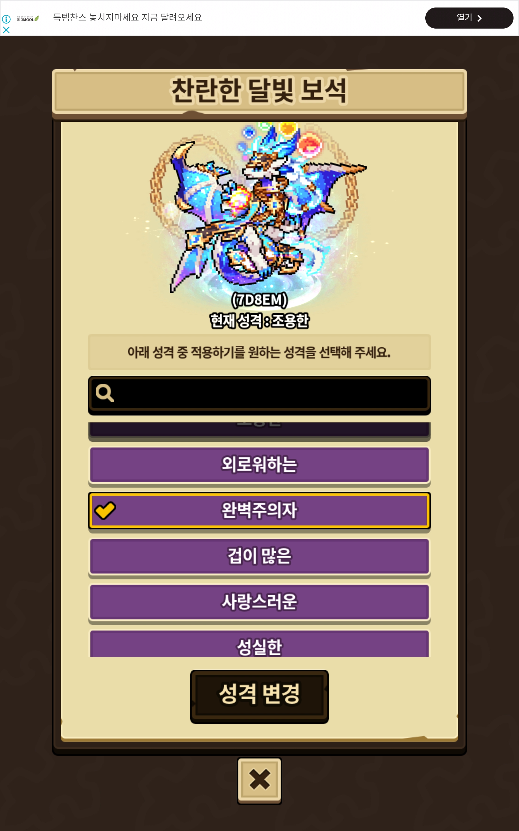 미트라 성격 산만으로 할까요 아님 완주로 할까요?
