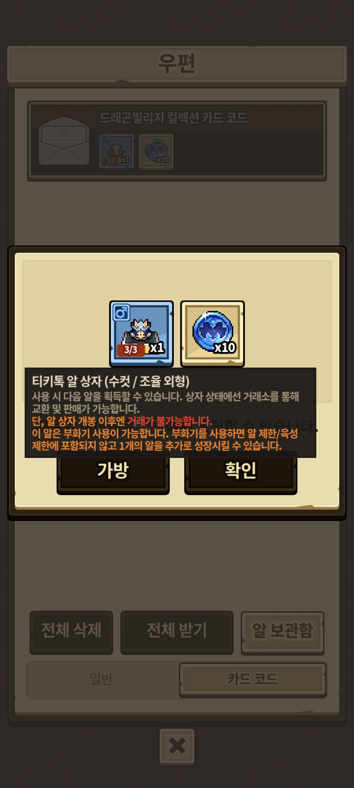 한 팩을 뜯은 결과물인데 어떤 식으로든 진짜 정직하게 나와줬네요. 그래도 원하는 티키톡은 얻었으니 최소한 본전은 건졌던 거 같습니다👍 (거기에 디폴트 성별!)