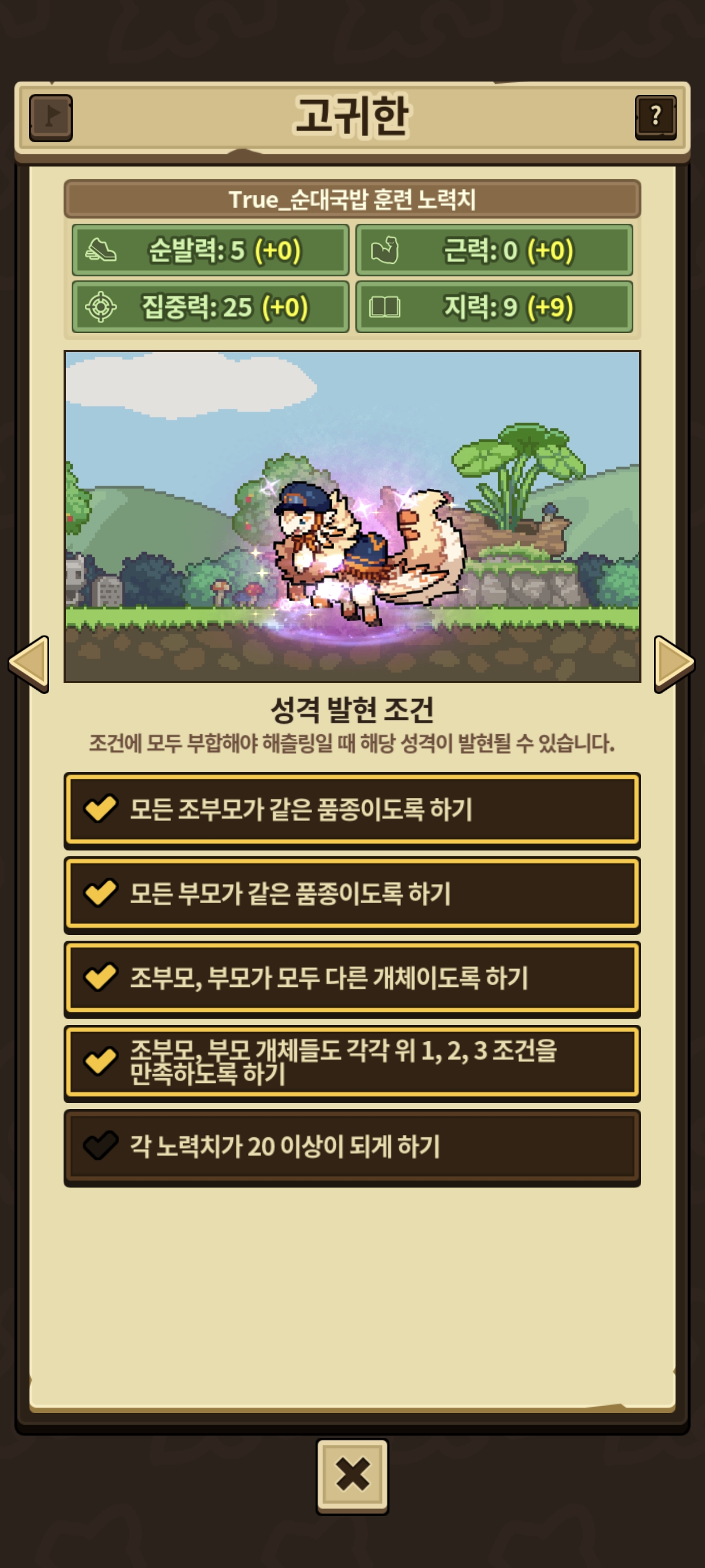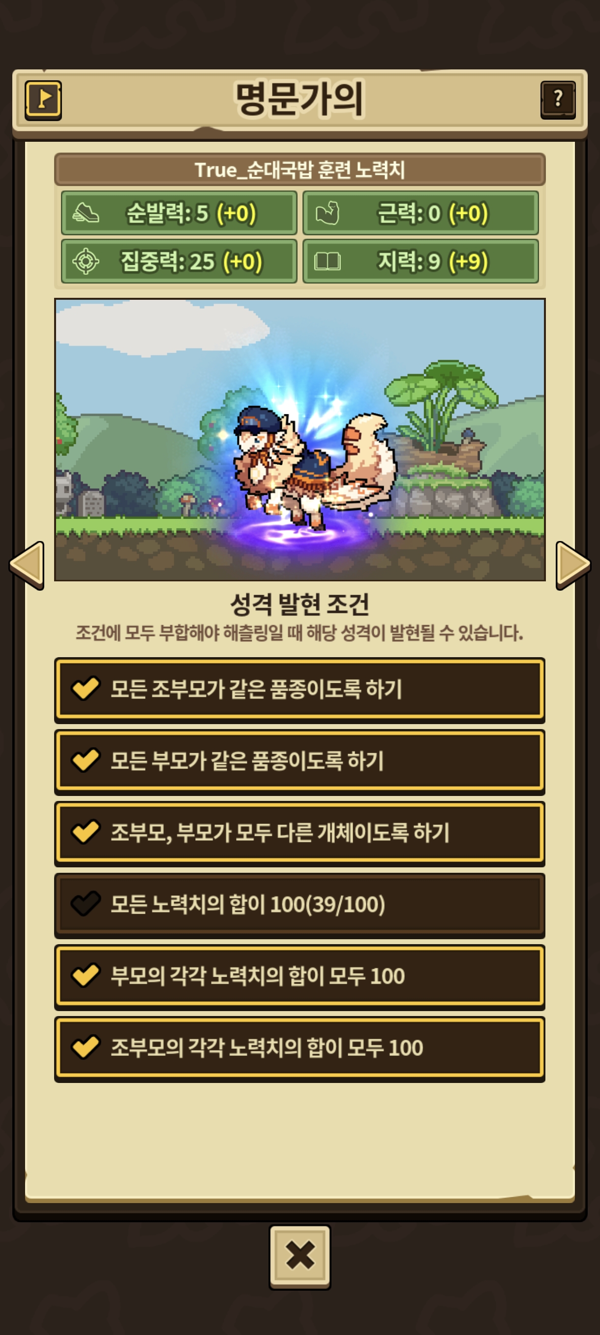 아무튼 이걸로 성격도 전부 맞고 고귀와 명문작 모두가 가능한 아주 쌈-뽕한 족보의 첫 성공에 도달하게 되었는데, 가능하다면 이렇게 만든 명문가 족보를 원작자 분에게도 한번 나눠드려보고 싶습니다. 자작룡 매니아도 따야 할 거고 강력한 팬심을 보여줘야 하지 않나 싶은…