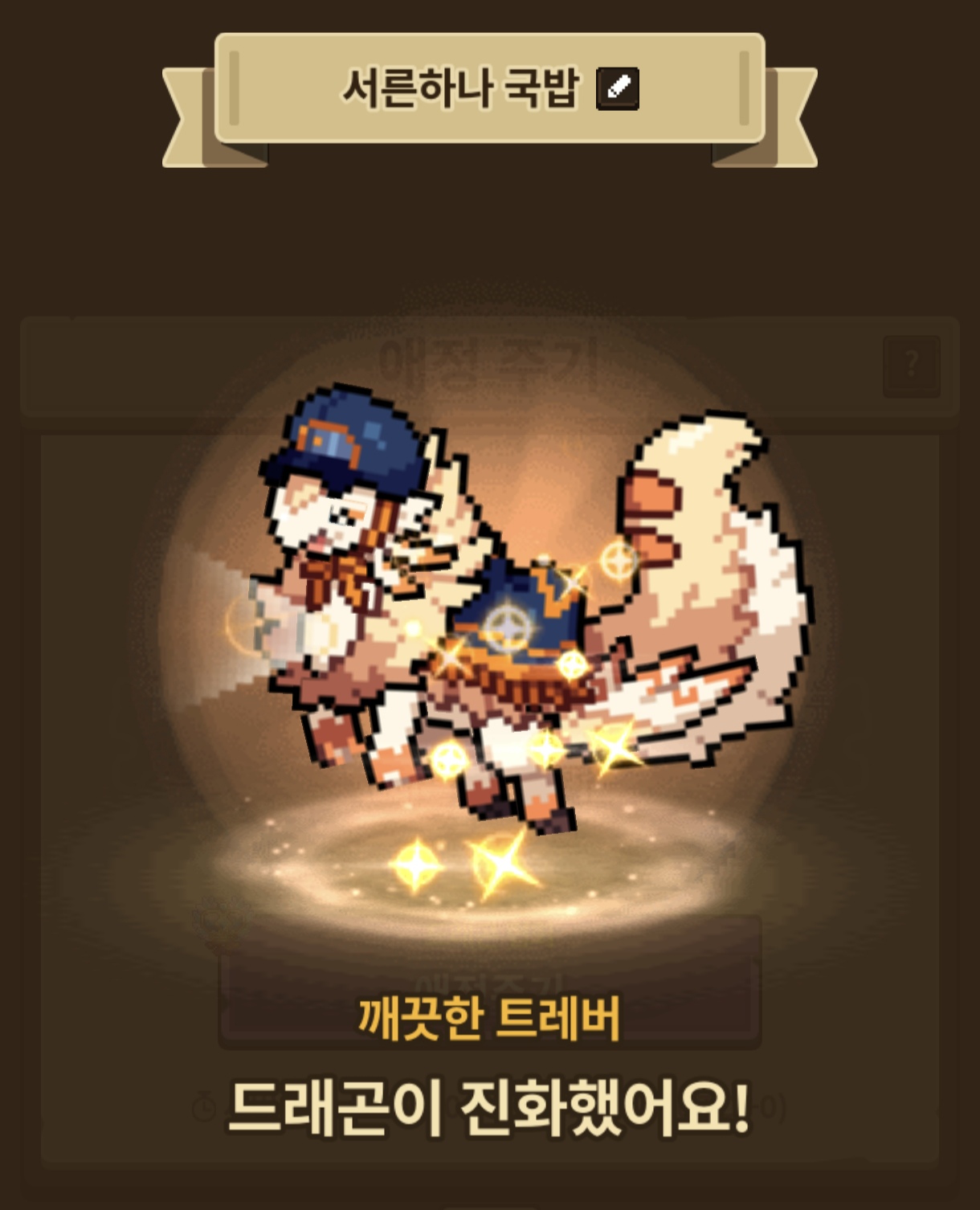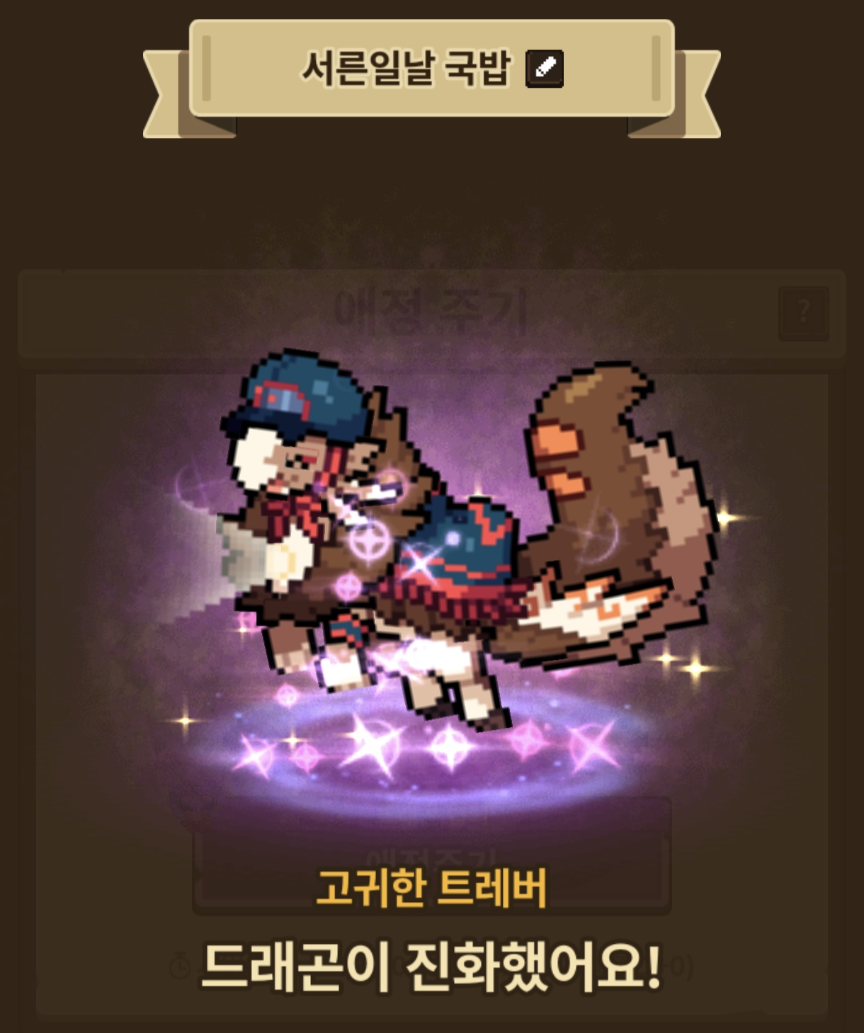 원작자 분의 은혜를 받아 성격작을 완료했습니다. (트레버 원작자 분께 정말 감사의 인사를 드립니다) 그 중 한마리는 당선작 1세대 부모인 2세 아이여서 최근 가장 난감한 성격인 영롱한까지 맞춰줬네요.