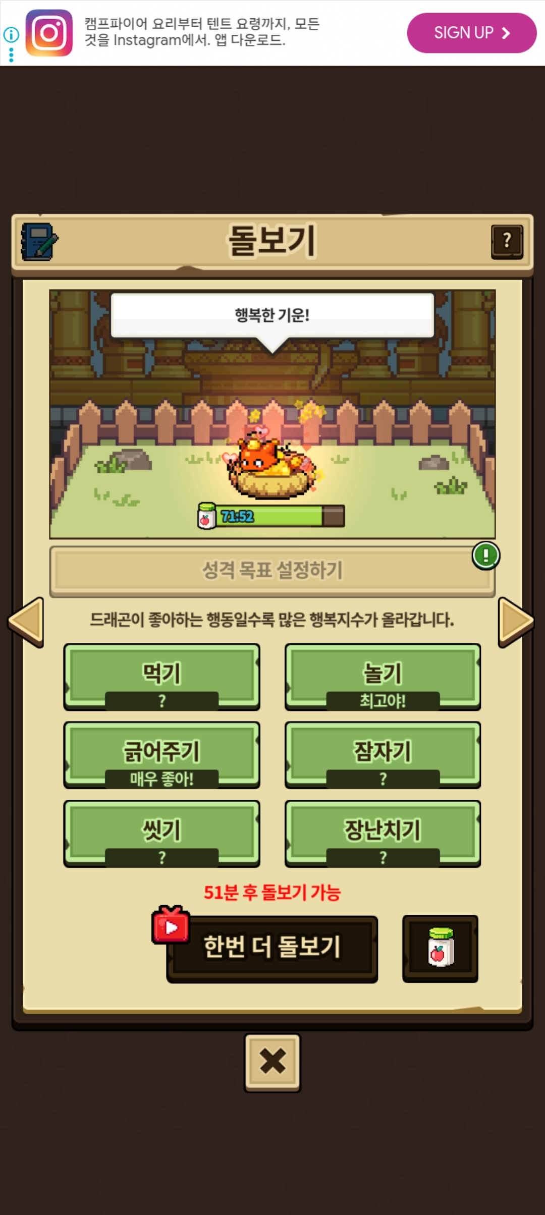 혹시나해서 행복지수 최대로 해줬는데도 이러네요
