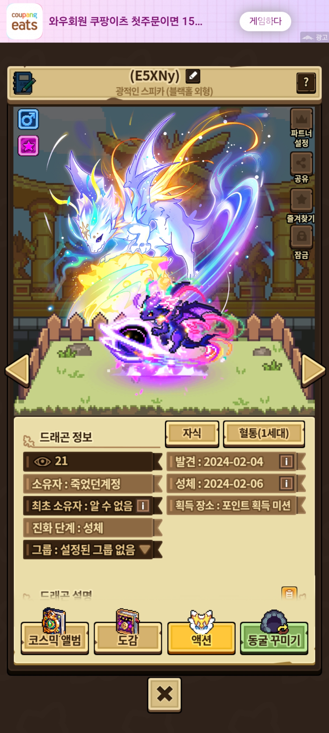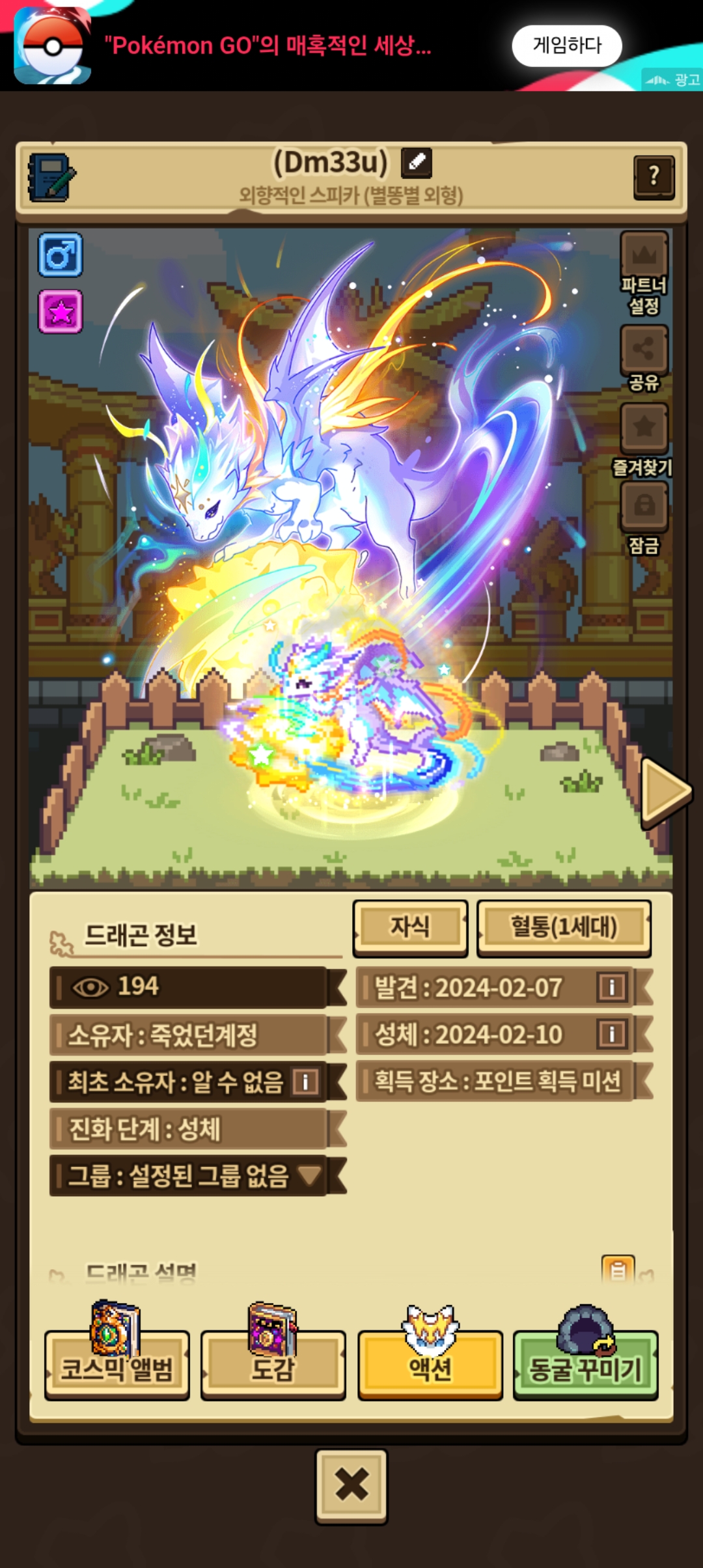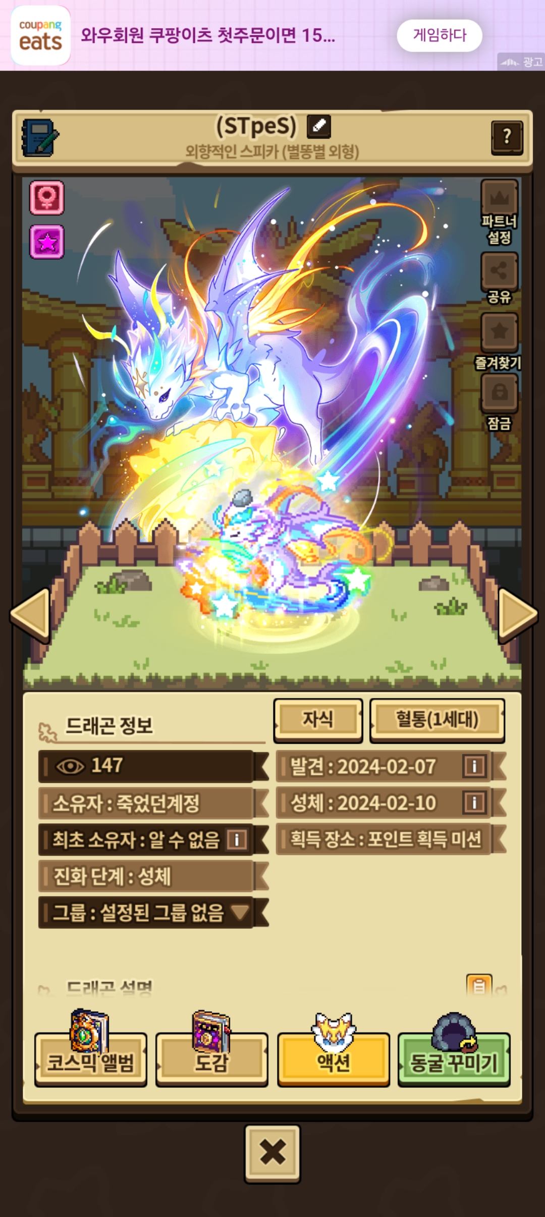 스피카(별똥별 외형) 특수모션 + 외향적인 성격 (암수 한 쌍)