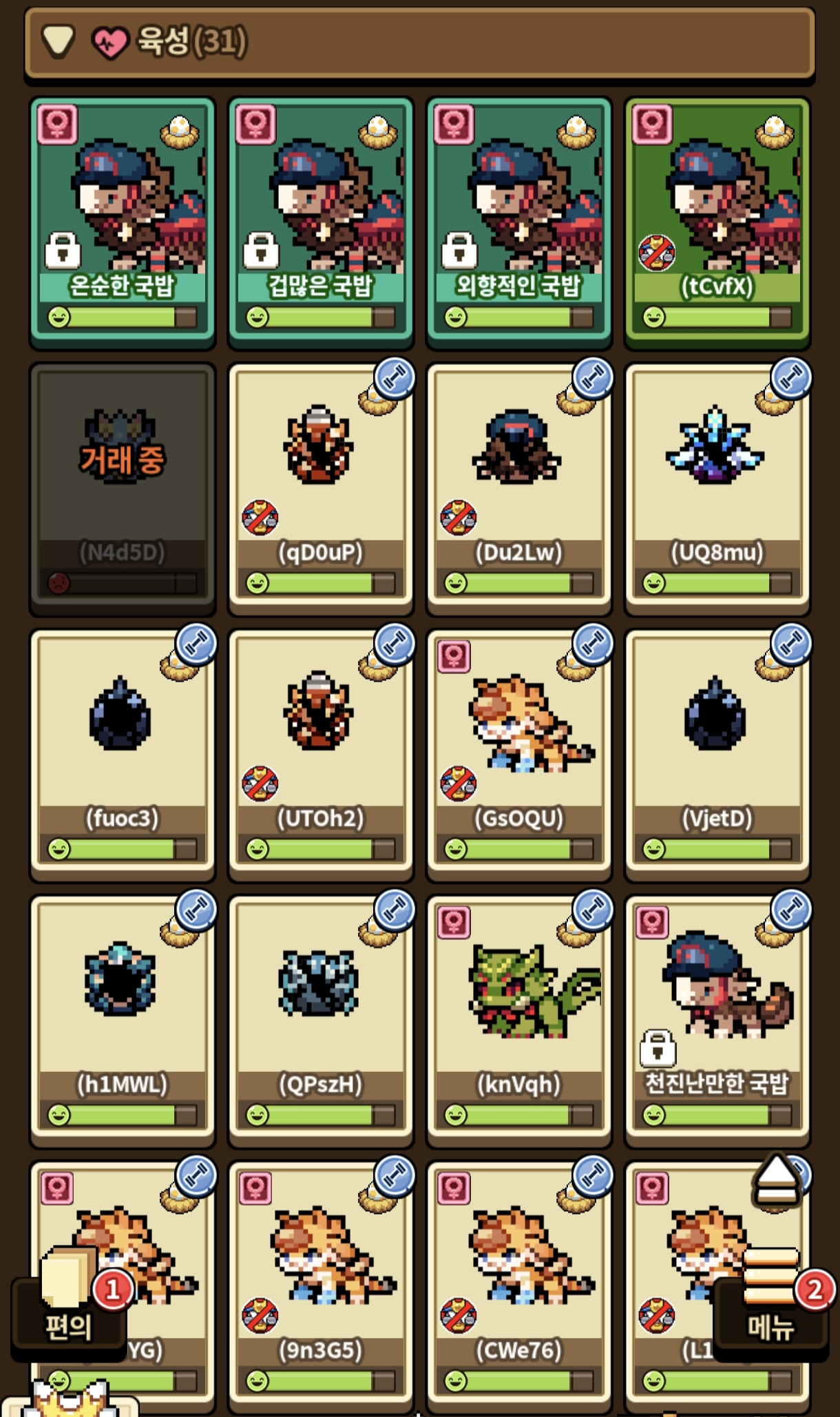 밴드곤 암컷은 어느덧 4성이 되었습니다. 무한히 트라이하다 보면 언젠간 뚫기는 하더군요. 남은 5성까지 계속 달려봐야 겠습니다. 아마 다음 5성작은 성격작 매니아작 모두 달성하게 될 트레버지 않을까 싶네요.
