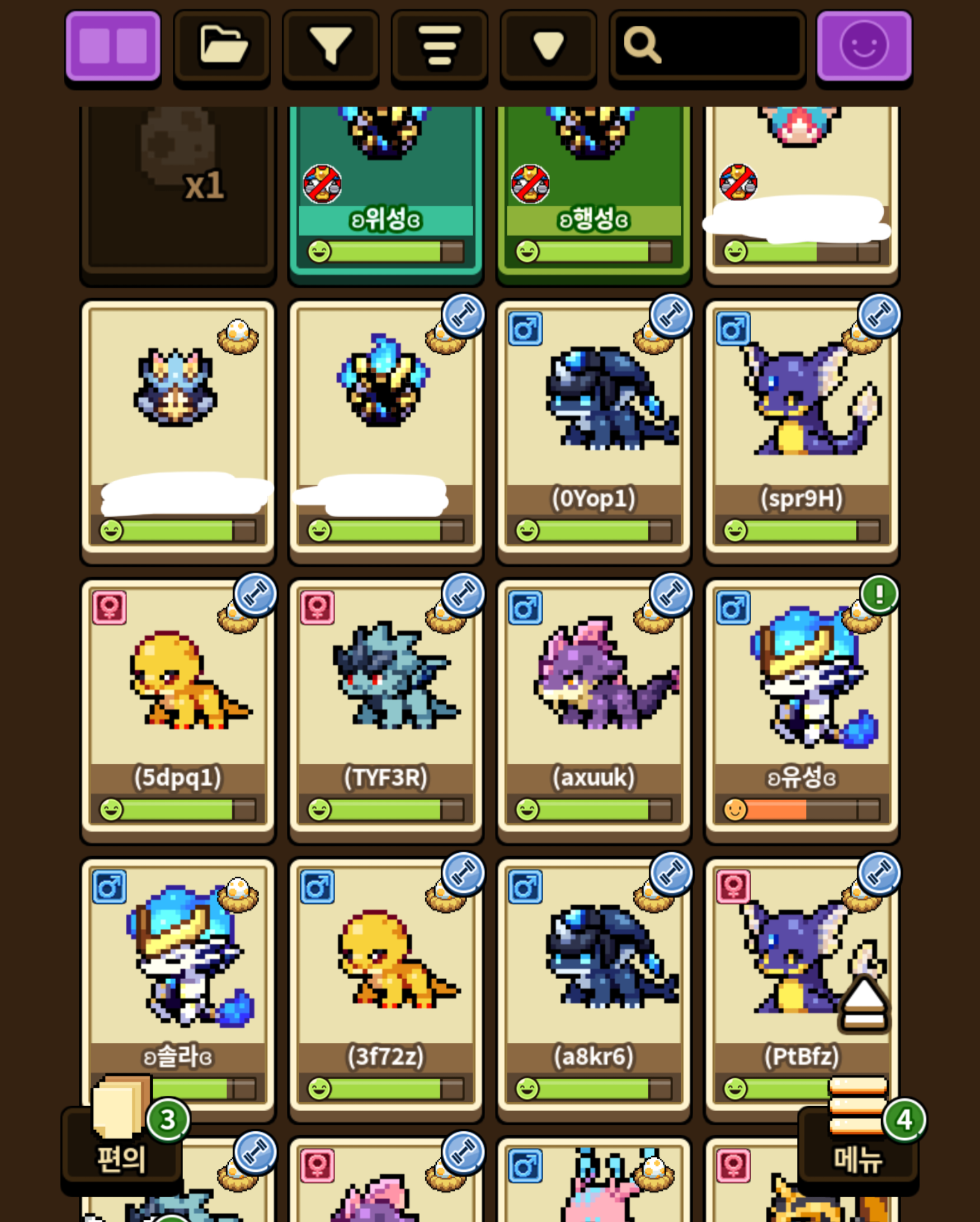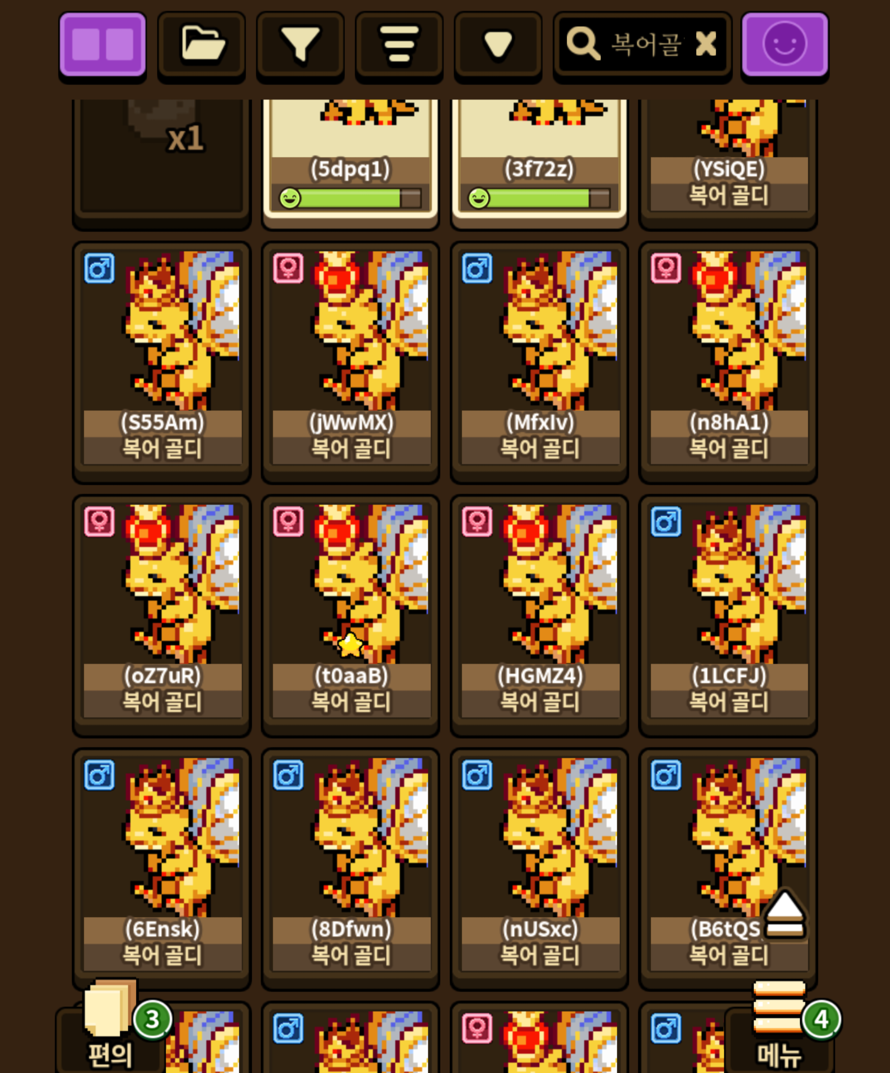 수컷으로 5성작 하려고 열심히 모으는 중인데 (꺼낸 아이들까지 세보면 이때까지 암8 수10 모았어요!)