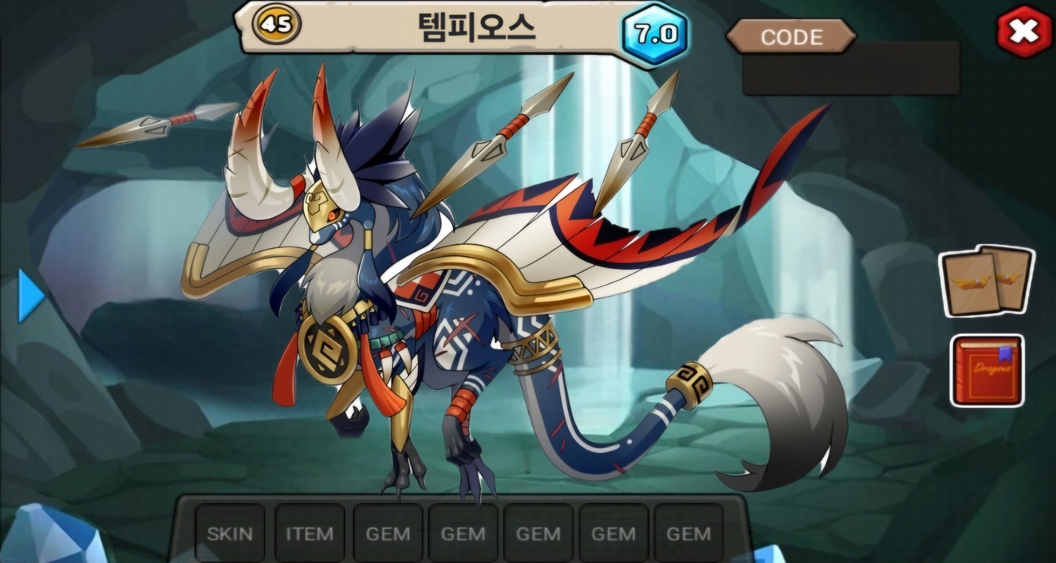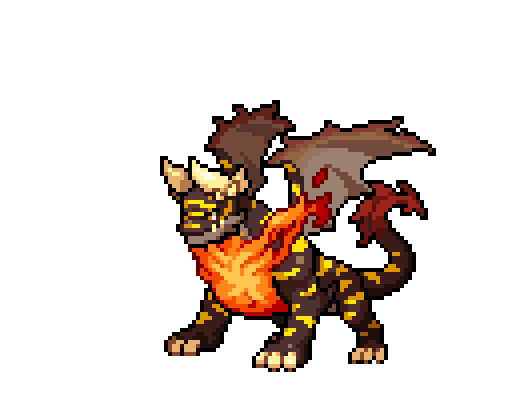| 베네토리 대륙의 신성한 사원을 수호한다. 문명을 지키고자 했던 고대 원주민들의 염원이 하나로 모여 형체를 이뤘다. 온몸에 새겨진 문신의 힘으로 공중에 창을 소환한다. 사원을 모독하거나 침입하려는 자를 창으로 처단한다. | 극단적으로 진화한 괴력형 드래곤. 거대한 어금니는 상하로 교차하여 그 흉포함을 발산한다. |