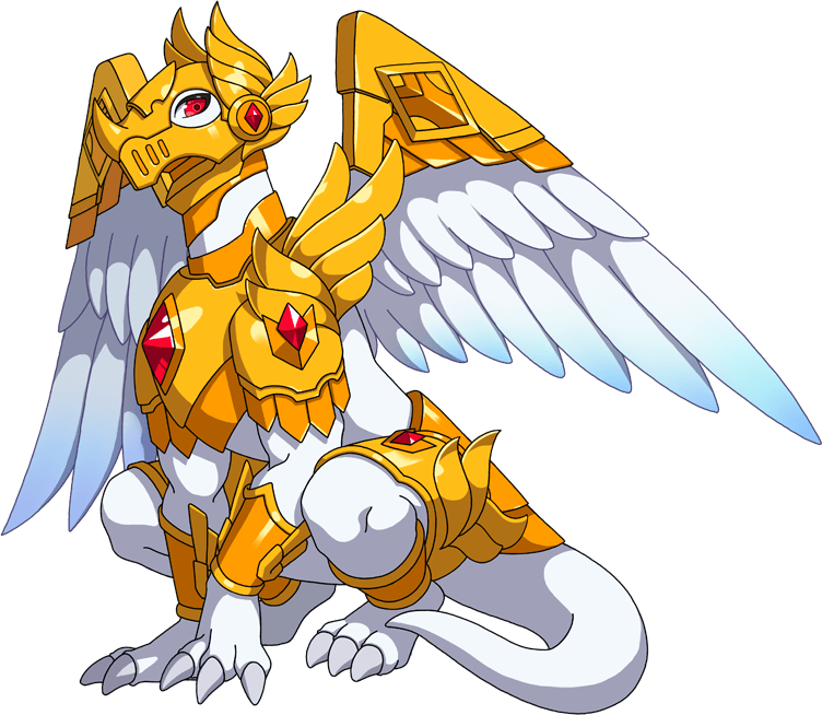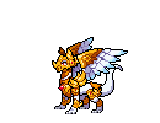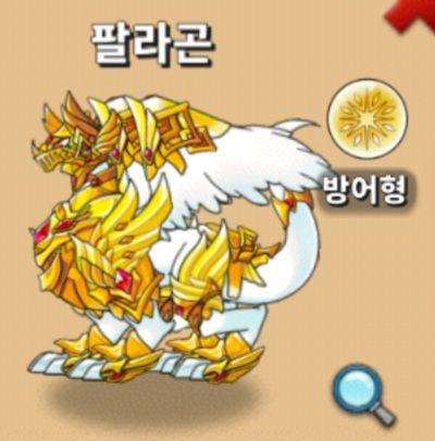 | 파괴적인 불 속성 드래곤의 성향을 잘 나타내는 드래곤. 이글거리는 화염의 힘은 화룡의 후손인 파이어드래곤과 견줄 만하다. | 빛을 형상화한 금색 갑주를 입은 드래곤. 권위와 신뢰의 상징이기 때문에 여러 가문에서 팔라곤을 본뜬 문장을 사용한다. | |