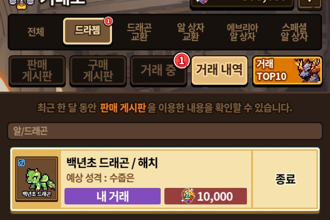 시세보다 훨씬 비싸면 당연히 안가져갈거라고 생각하고, 거래취소해도 500드링이면 훈련2회값 정도로 적당하다고 생각해서 12시간뒤에 거취 할 생각으로 한건데 이걸왜어째서 가져가셨을까요..🫠