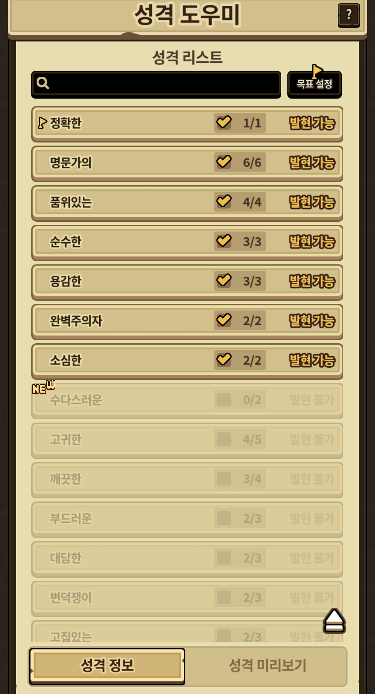 이제 어찌저찌 필통곤 성격 올컬렉도 조회수 성격들을 빼면 순5 성격인 깨끗과 고귀만 남게 되었네요.