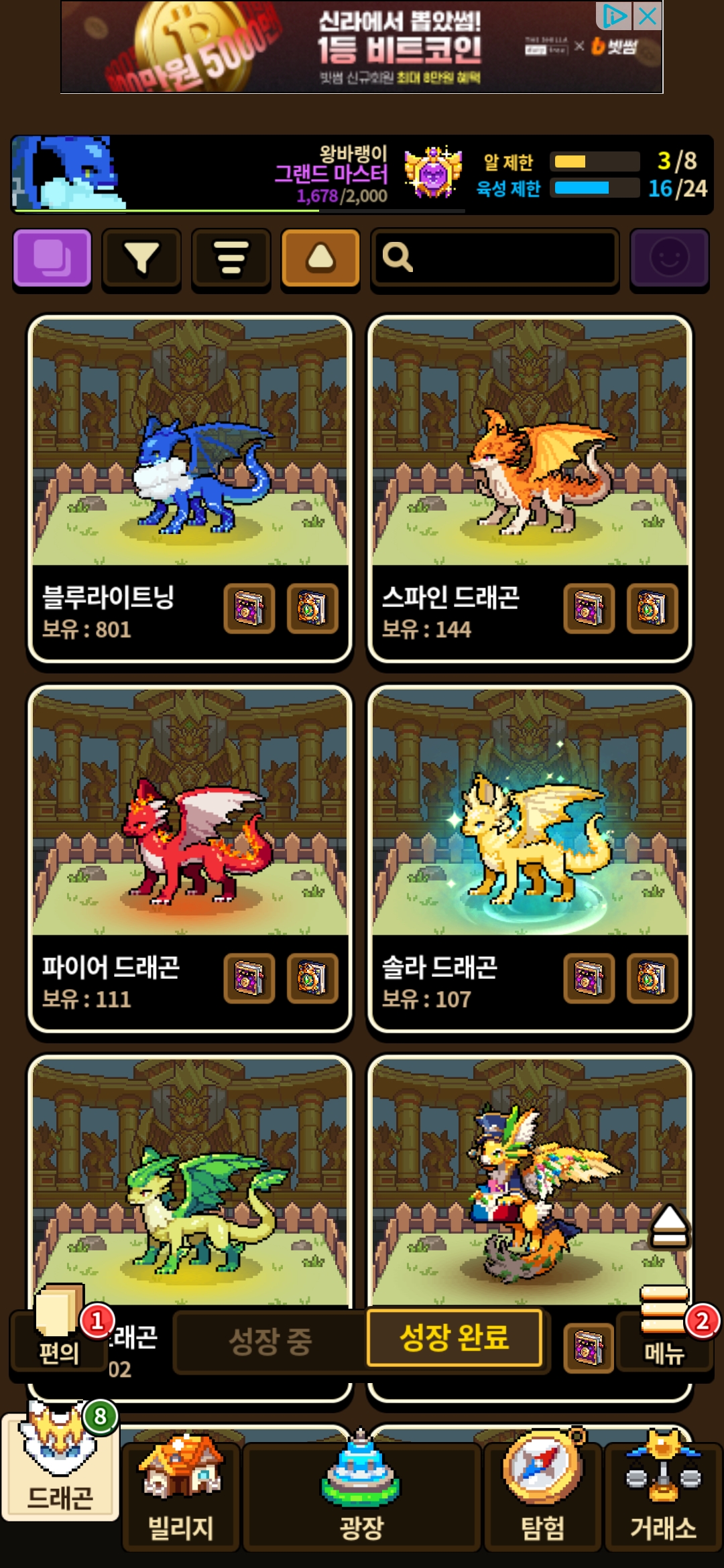 사부작사부작 모으다보니 800마리 모았네요 천마리도 모으고 10세대도 만들어보려합니다