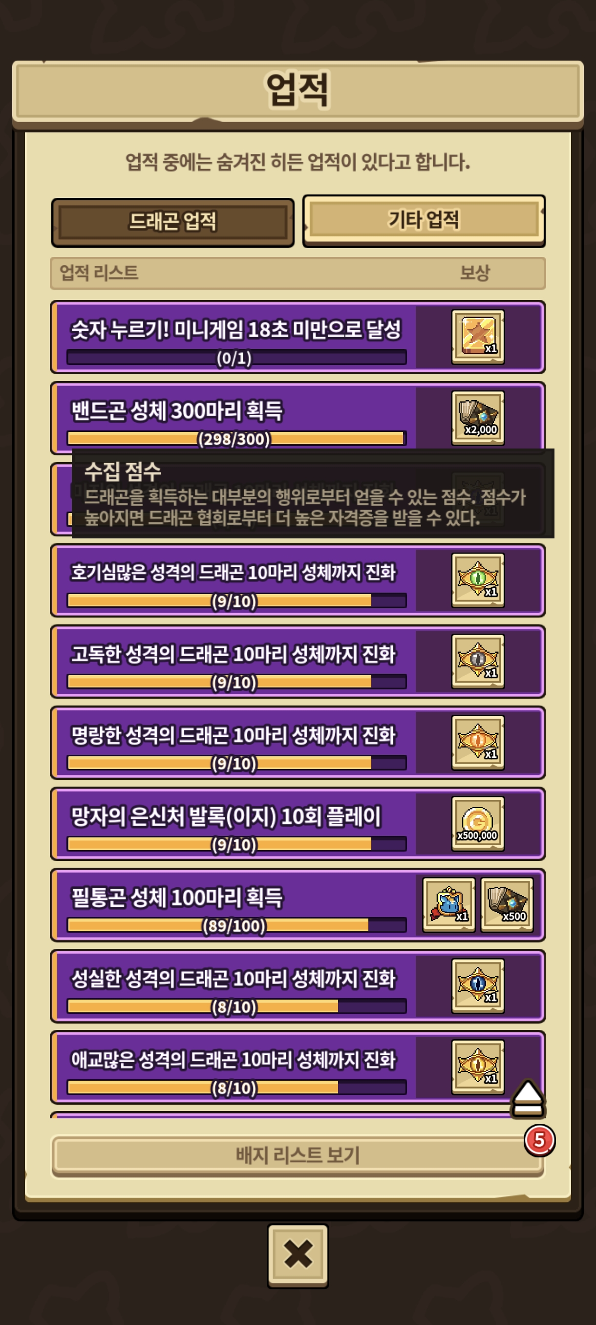 그리고 이번에 성체 수가 300마리, 500마리도 싹 다 카운트가 되서 밴드곤 성체를 정확히 얼마나 키웠나 봤는데 298마리 키웠네요👀 그냥 2마리 더 키우면 딱 점수 더 얻을 수 있겠습니다.