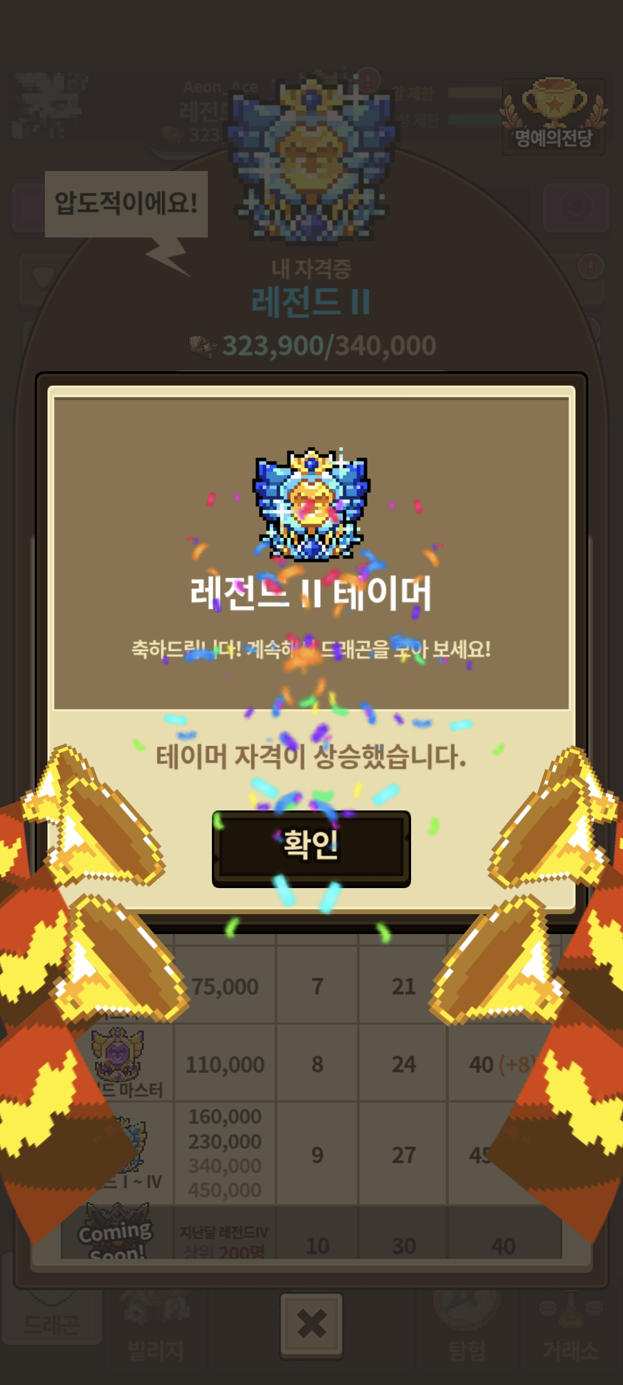제목은 곧 내용. 레전드 신 등급이 추가됨에 따라 레전드 I I 까지 올라왔습니다. 다만 막바지라서 점수 더 채우면 레전드 III 가 되겠네요🤔 하늘왕국 렙작 이밴트, 꿈세계 렙작 이밴트 모두 빠짐없이 파먹었지만 등급은 엄청나게 높지는 않았는데 이건 성격작 안한 제 업보인 듯합니다🫠