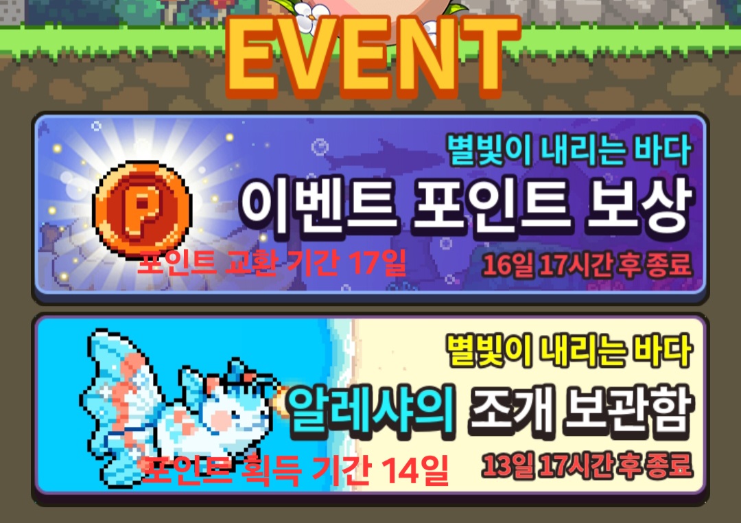 ‘이벤트 포인트 보상’ 해당 배너에 표기된 17일이라는 기간은 기존 이벤트 14일에서 포인트 교환 기간 3일이 추가된 것입니다