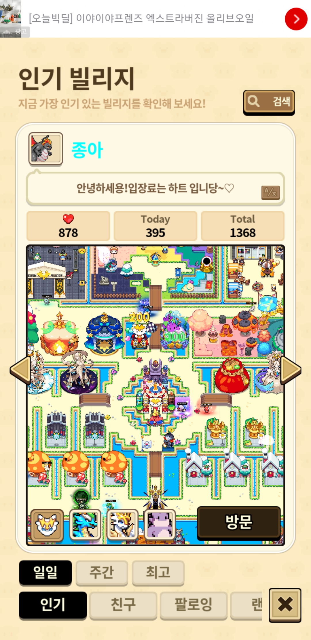 아침에 500개 쯤엿는데 300가 늘어서 혹시나 했는대 인기 빌리지 됬네요!!!