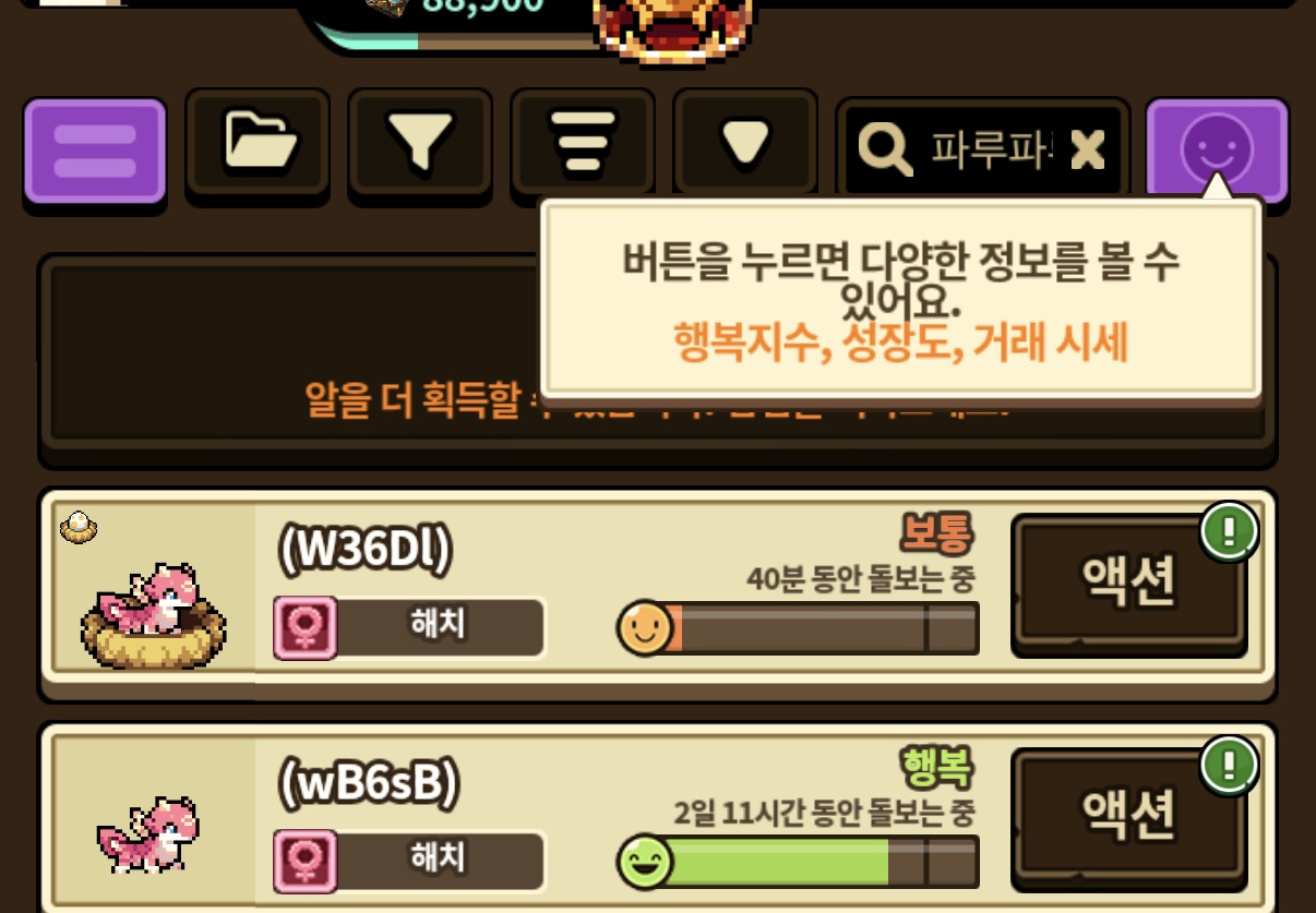 성별교환..가능하신 분 구해요ㅠ(선물 받지 않은 파루파루로 수컷 해치 구합니다…)