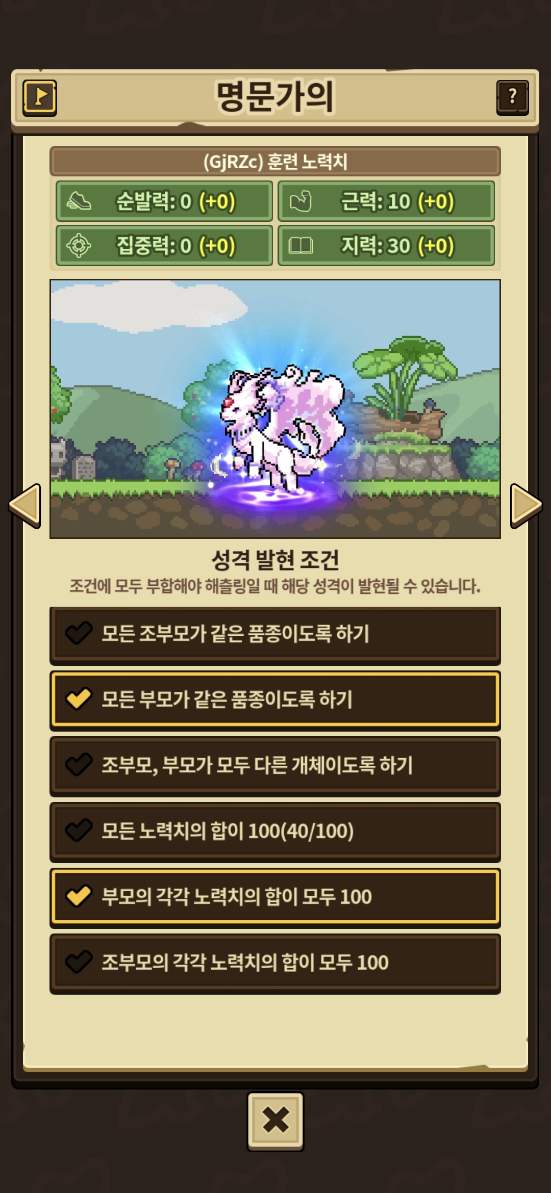 - 2. 해당 백룡 두마리를 노력치 100으로 맞춰 정확한 성격or동경성격 맞추기