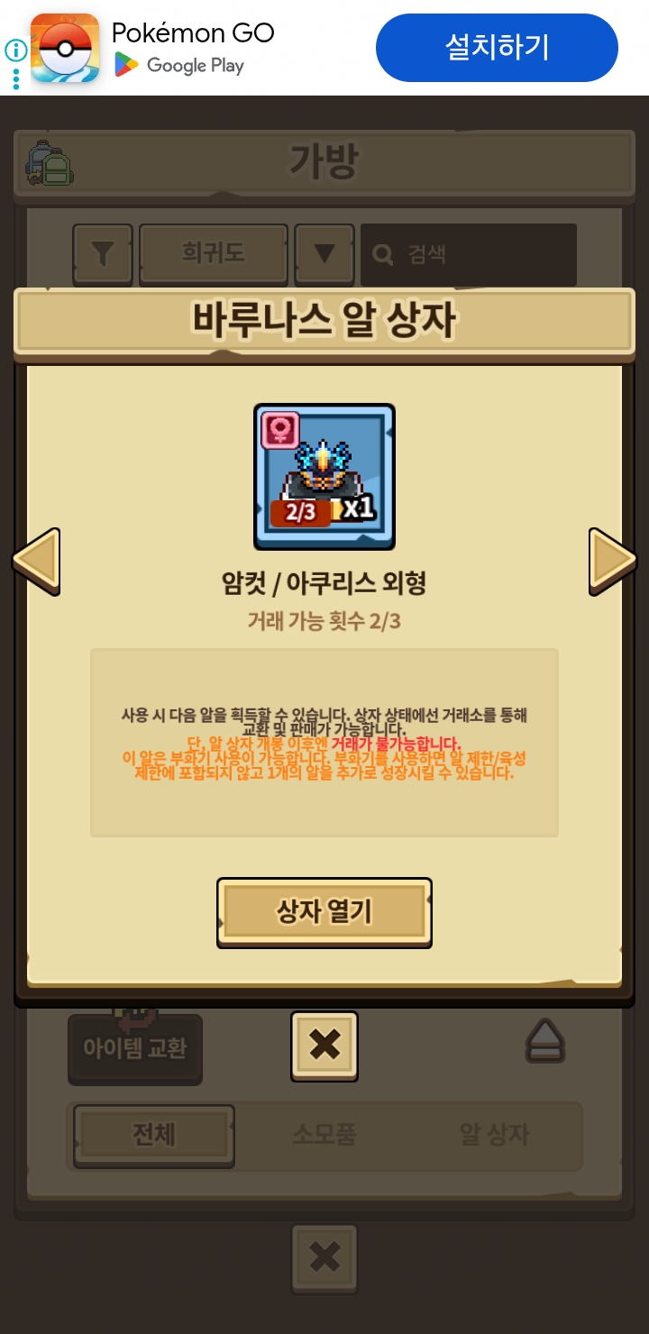 여기서 잠깐! 알상자는 선물주기가 불가능하여 , 아무알상자한개정도 가지고 계셔야 합니다!