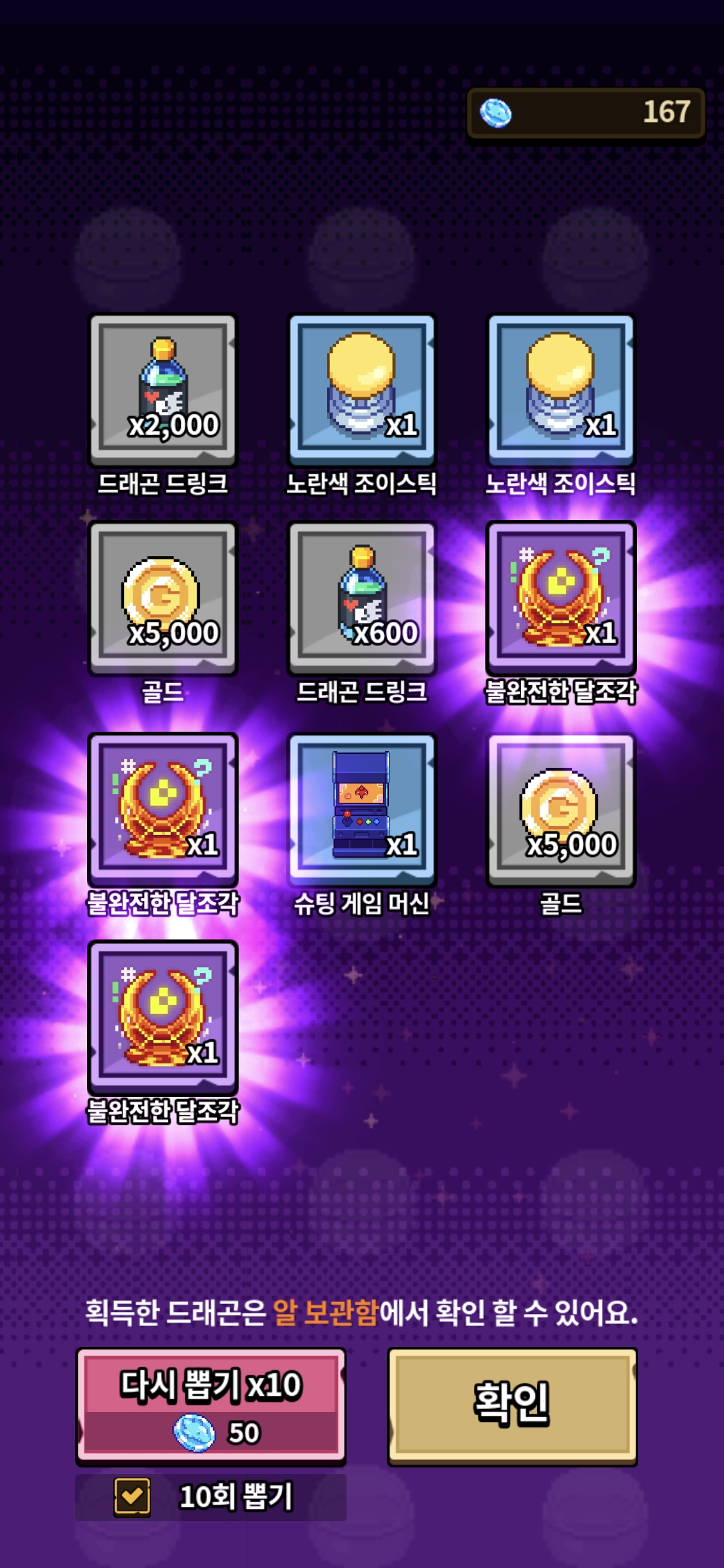 모니모는 천장으로 얻을 수 있지만 달조각은 오직 뽑기라서 3개 나와준게 기쁘네요