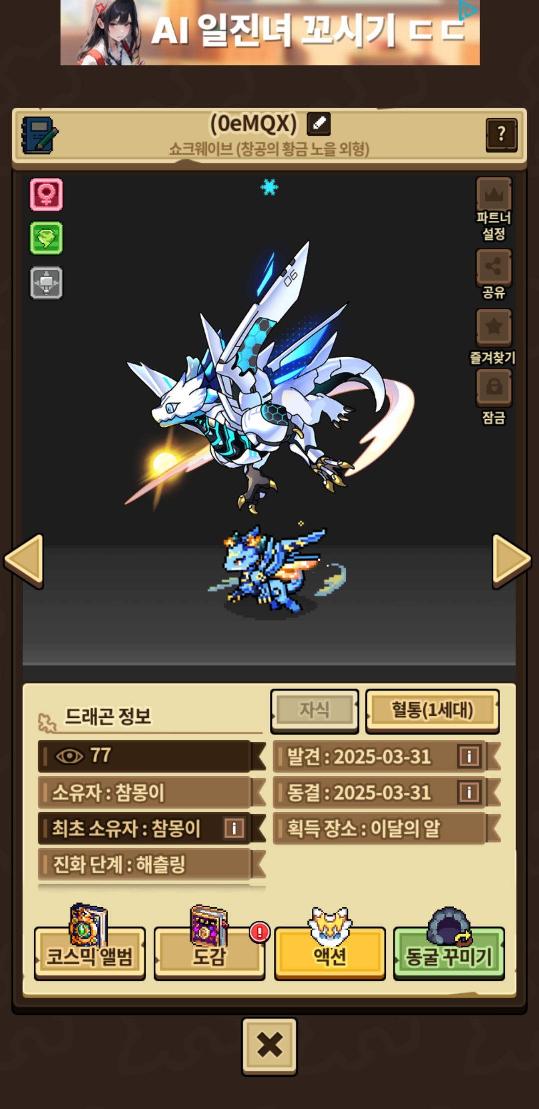 헤츨링때 너무 예뻐서 동결한 쇼크웨이브