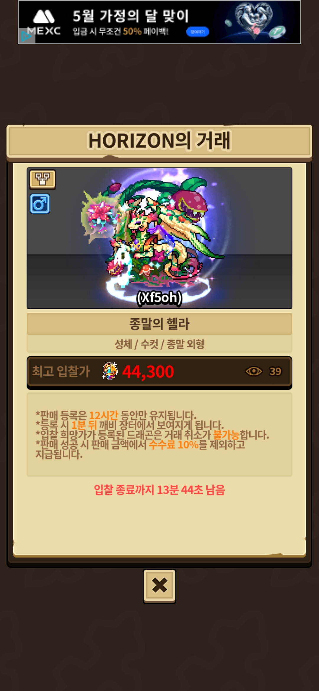아무리그래도 종말헬란데 44000은 너무 낮은 거 아닌가요..?? 아니면 원래 이정도 가격인데 제가 가치를 모르는 건가요😥 아까 올린 1세대 지배자 헬라는 거래 1시간 남았는데 1000언저리던데.. 이럴 거면 그냥 올리지 말걸 그랬나봐요😭