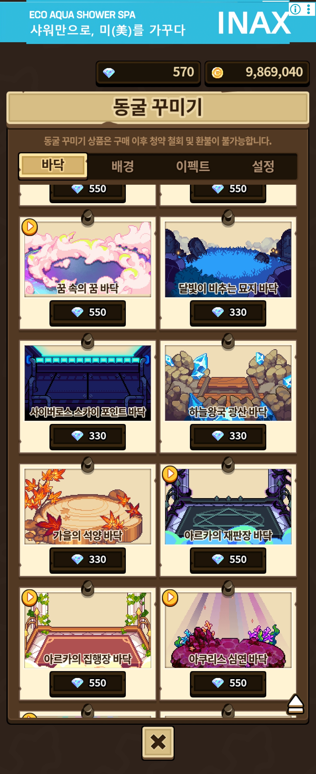 다른 아이들은 안그런데 이친구만 나갔다가 들어오면 배경이랑 바닥이 바뀌네요.