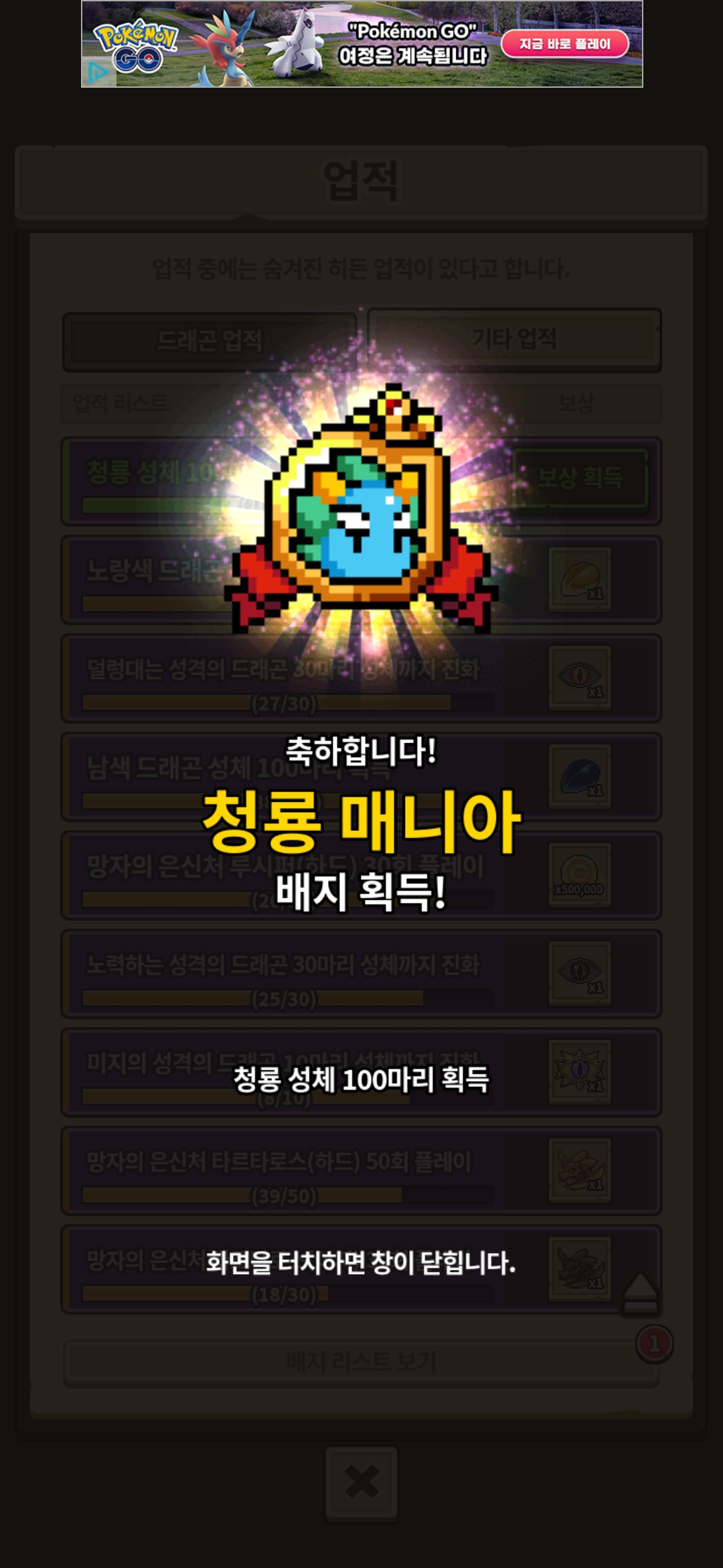 기다리고 기다리던 청룡 매니아를 땄습니다!