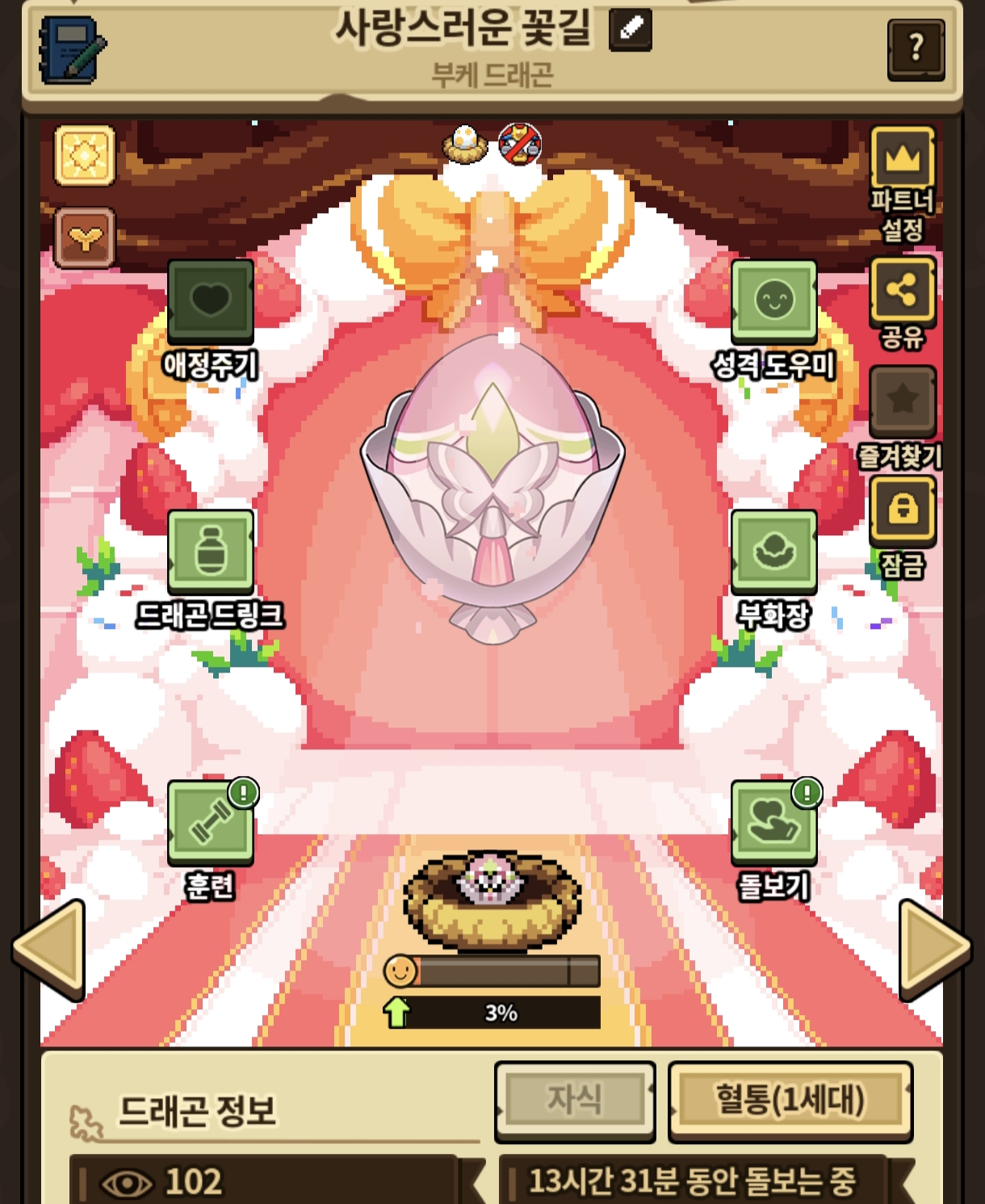 그리고 부케 사랑작도 최근 시작. 부케 성격을 다 컴플리트하고 있는 와중에 아직도 남은 건 귀여운과 사랑스러운 둘 뿐입니다. 그나마 귀여운은 조회 부적 얻는대로 바로 제작이 가능하지만 사랑작에는 조회 부적이 무려 2개나 들어가기에 좀 아깝죠.