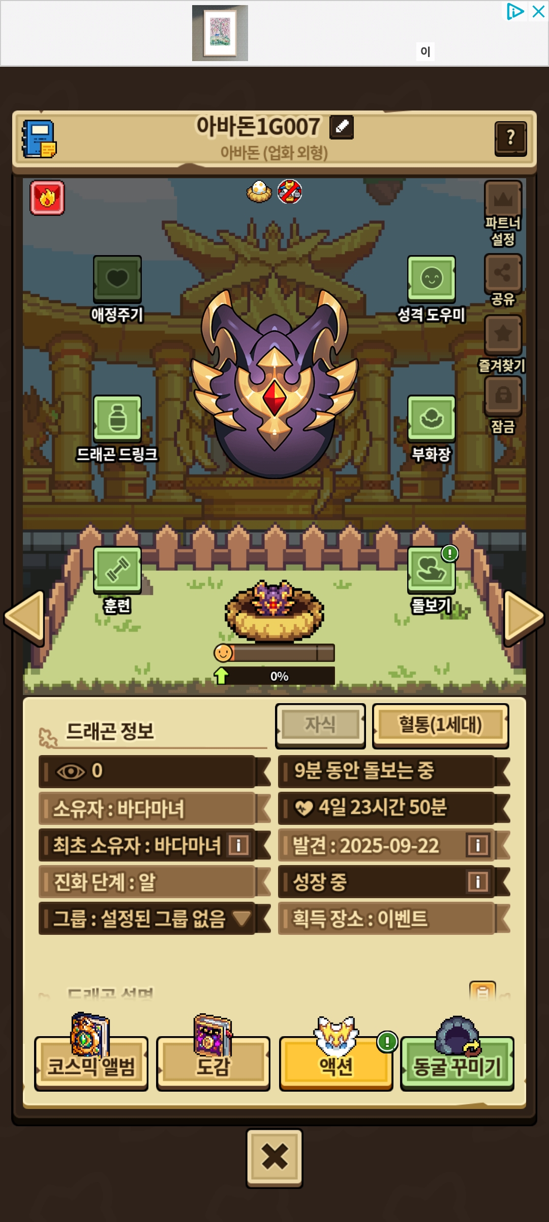 가방에 있는 마지막 아바돈 한 쌍을 키울 예정이라 1세대 도감작 필요하신분은 참고해주세요!