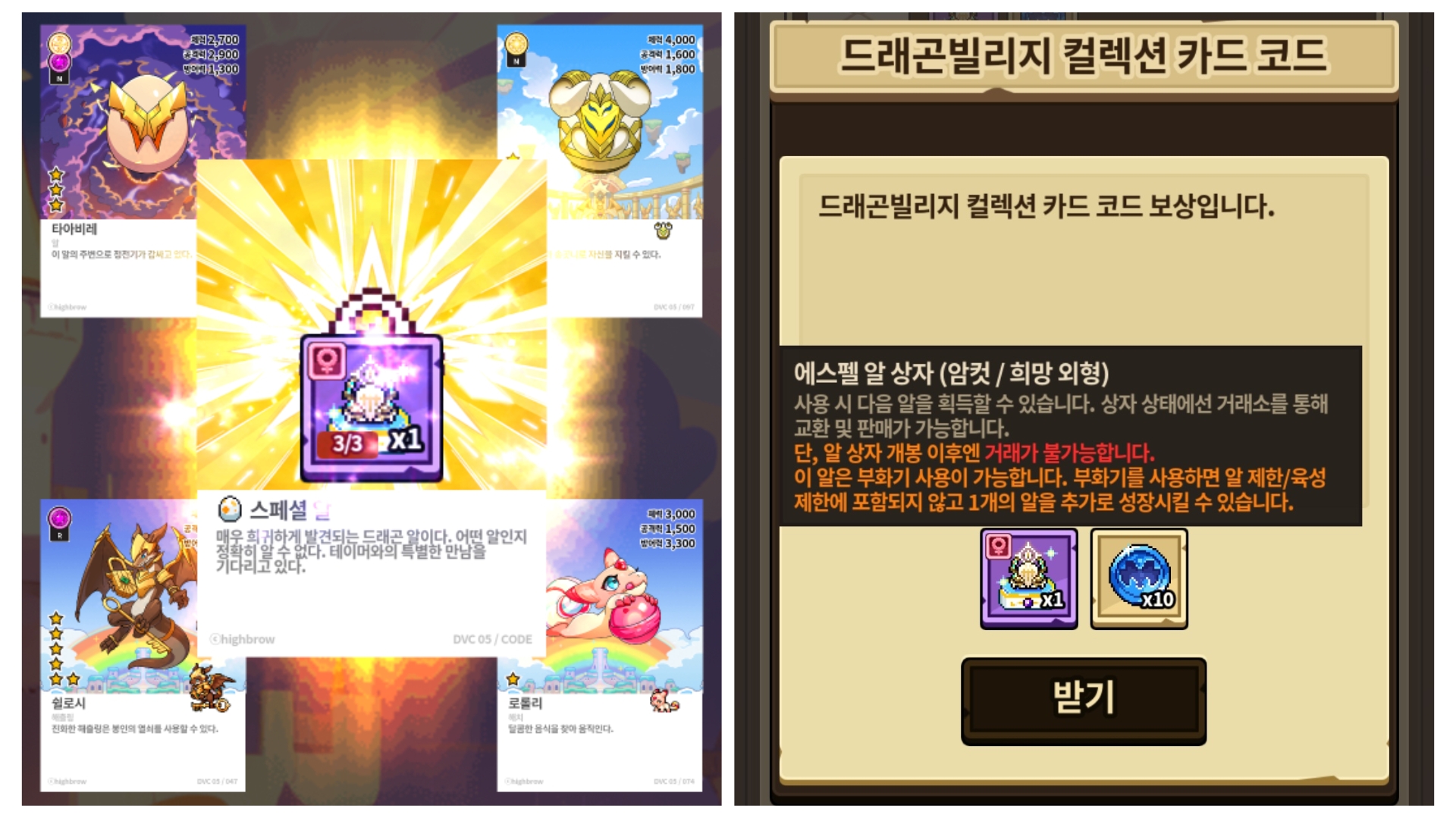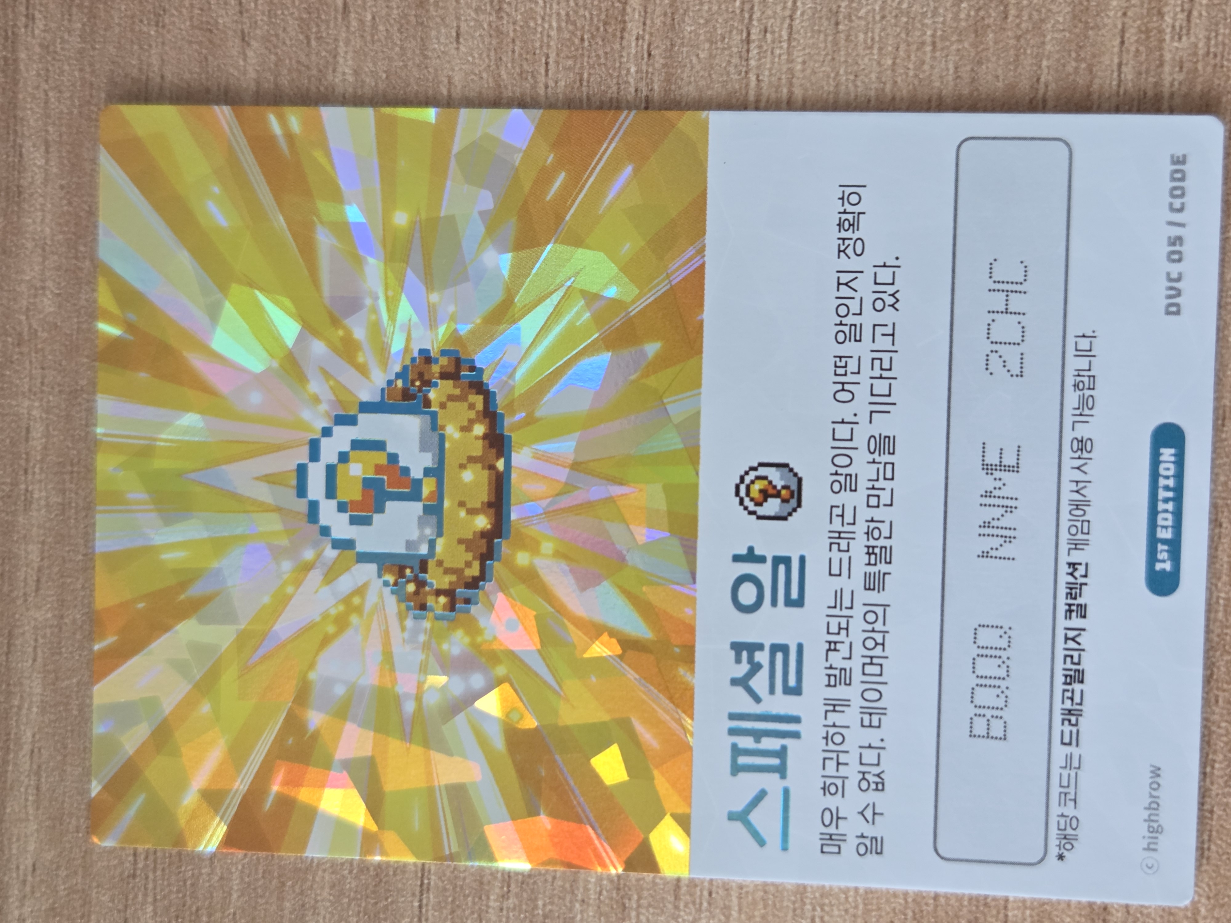 이전에 깠던 카드코드 조각이랑 이번 조각이랑 조합해서 얻은 알도 암컷 에스펠이네요. 이 아이는 팔거나 교환 할 때 써야겠습니당