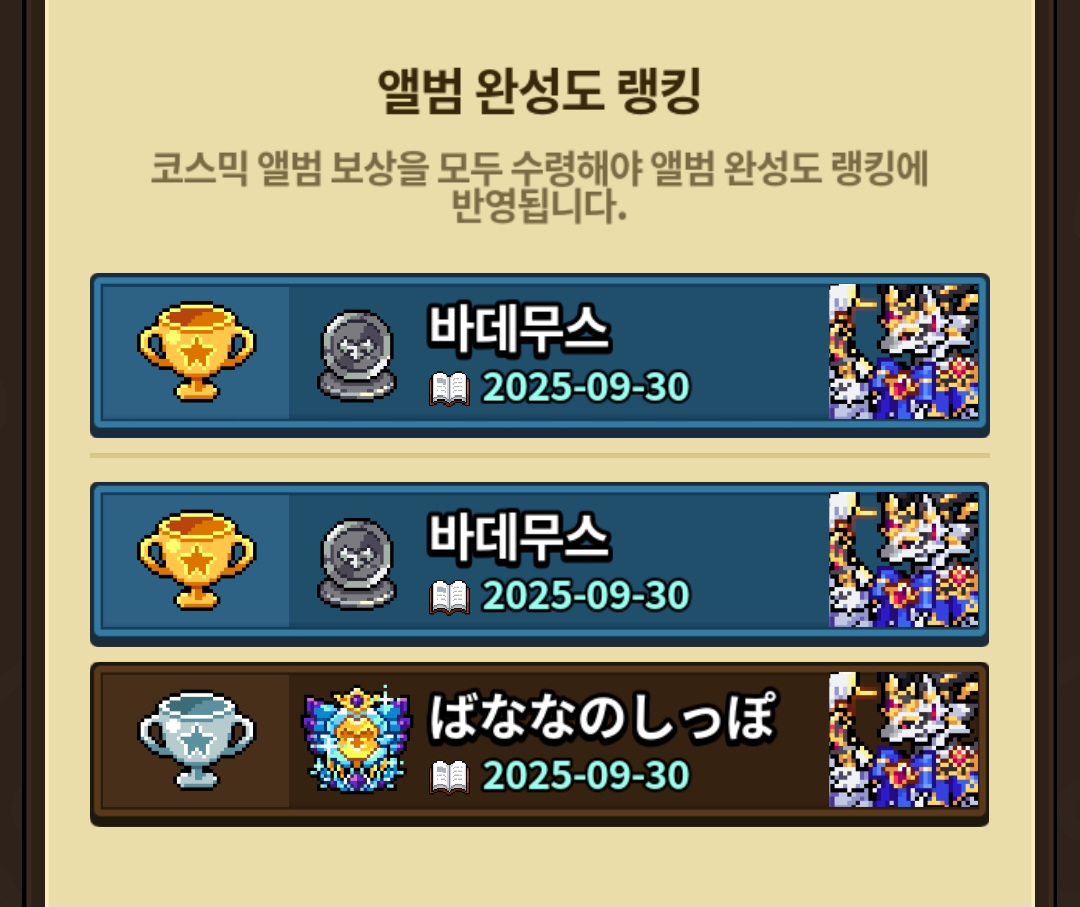 바데무스 코스믹 최초, 최초매니아 끝냈습니다!