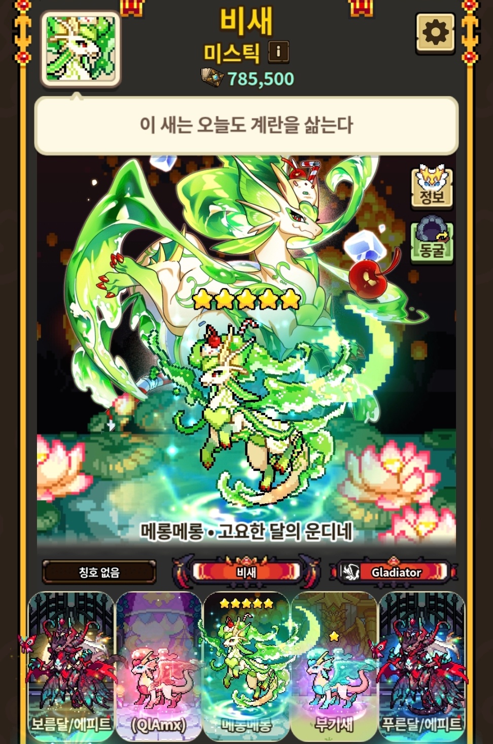 첫 5성 달성이네요! 최애 에피트는 도오오저히 달아줄 엄두가 안나서 운디네로 대신했습니다…