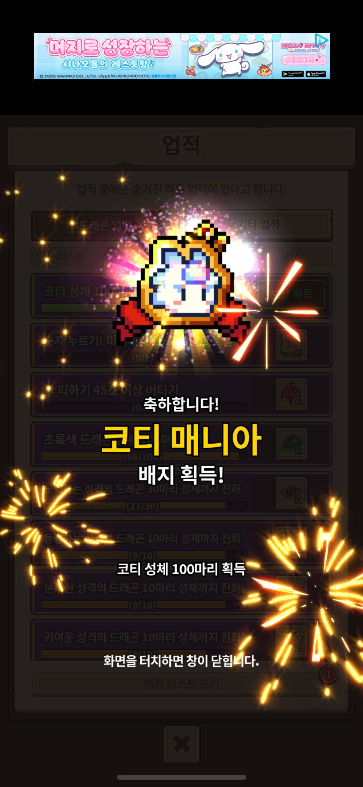 말랑말랑 귀요미 코티 매니아 달성했습니다!