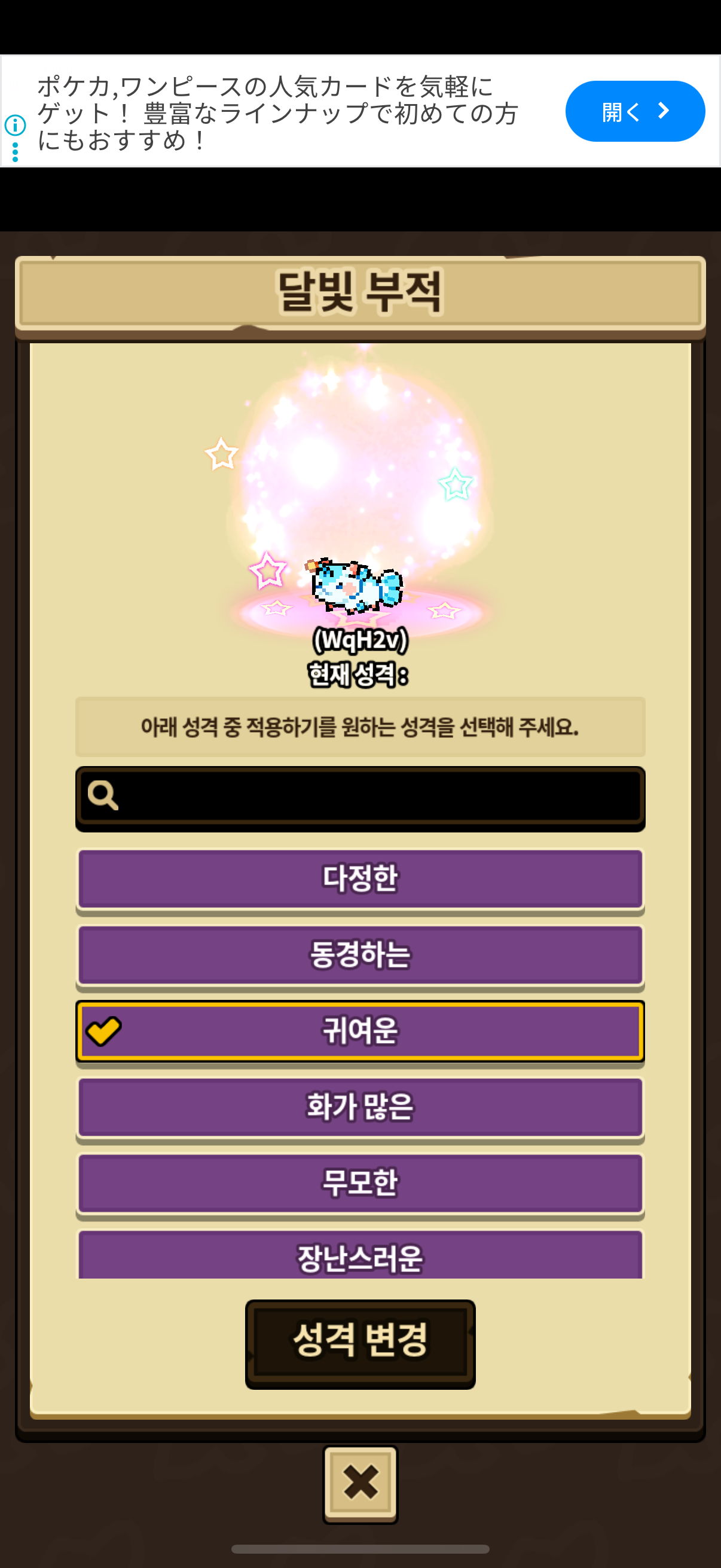 추석 내내 못 접속해서 겨우 한마리만 동결 성격 붙일 수 있네요ㅠㅠㅠ이렇게 금같은 기회를 놓치다니…